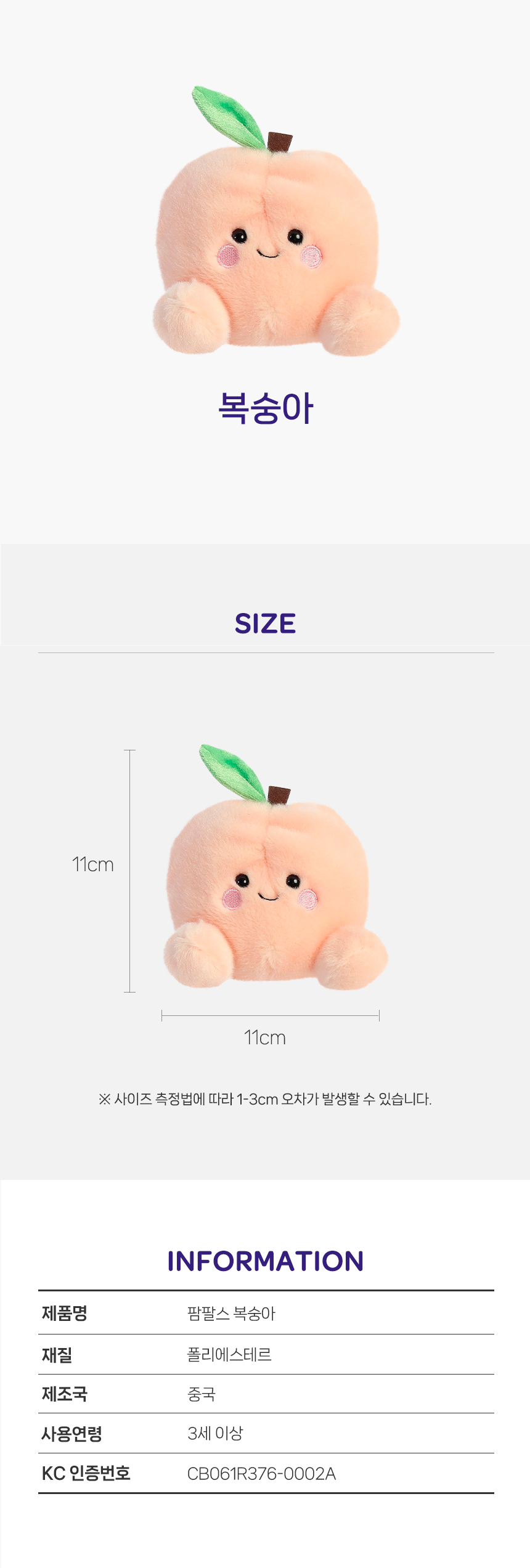팜팔스 인형 복숭아