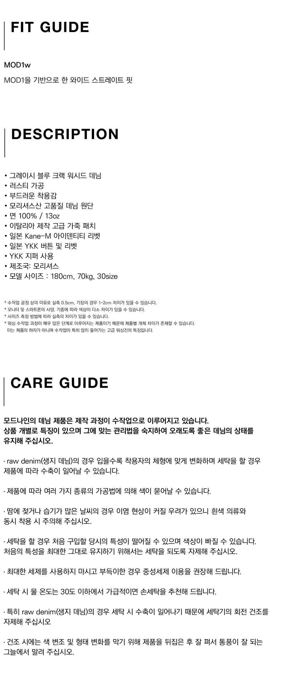 모드나인(MODNINE)은 2006년 론칭한 데님 전문 브랜드로, 시작부터 현재까지 데님만을 다루어 왔고 깊이 있는 데님 제품을 만들고 있습니다. 데님은 시간이 지날수록 색감이 깊어지고 디테일이 드러나기 때문에, 원단과 리벳, 버튼 등 데님을 구성하는 모든 것들에서 퀄리티에 대해 타협하지 않는 것이 모드나인의 유일한 원칙입니다.