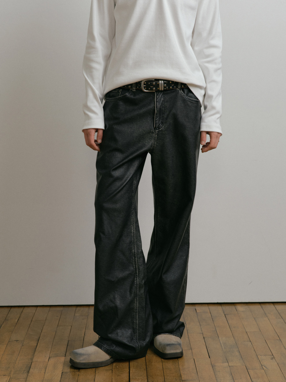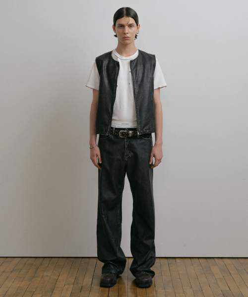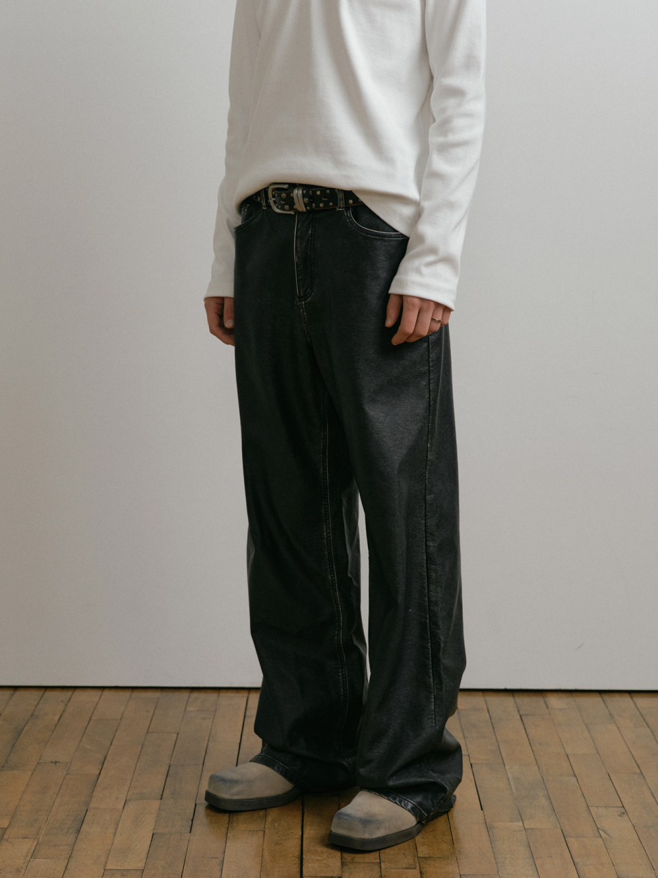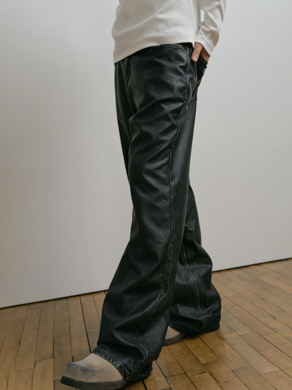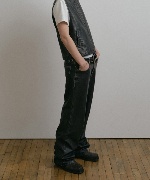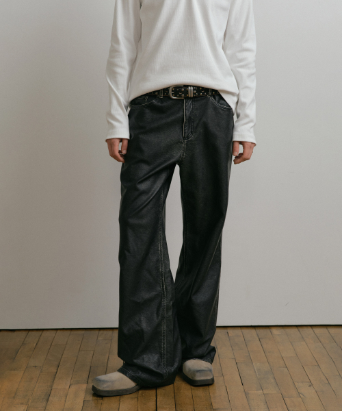 DUSTY BLACK WASHED FAUX LEATHER PANTS