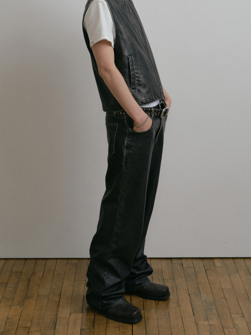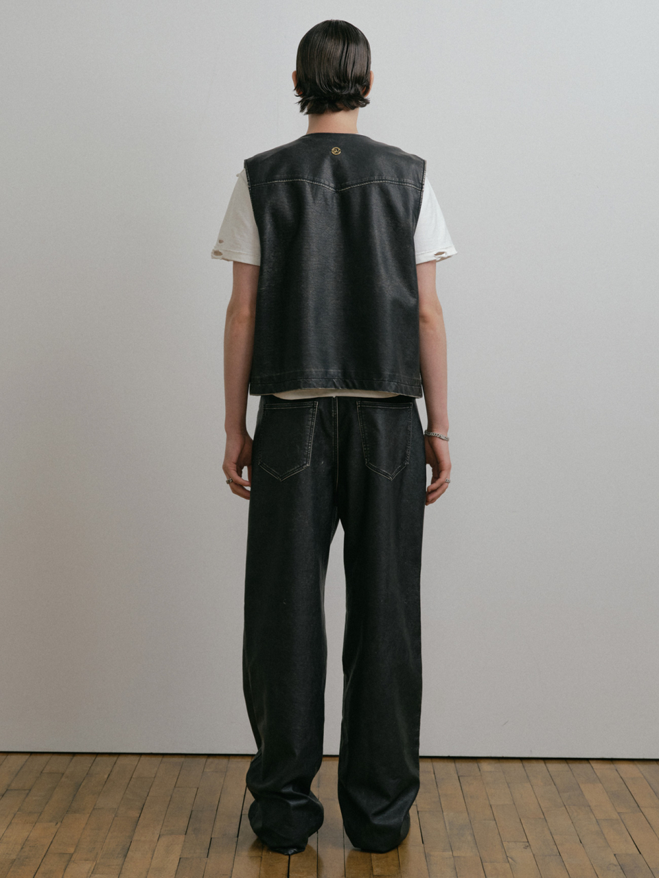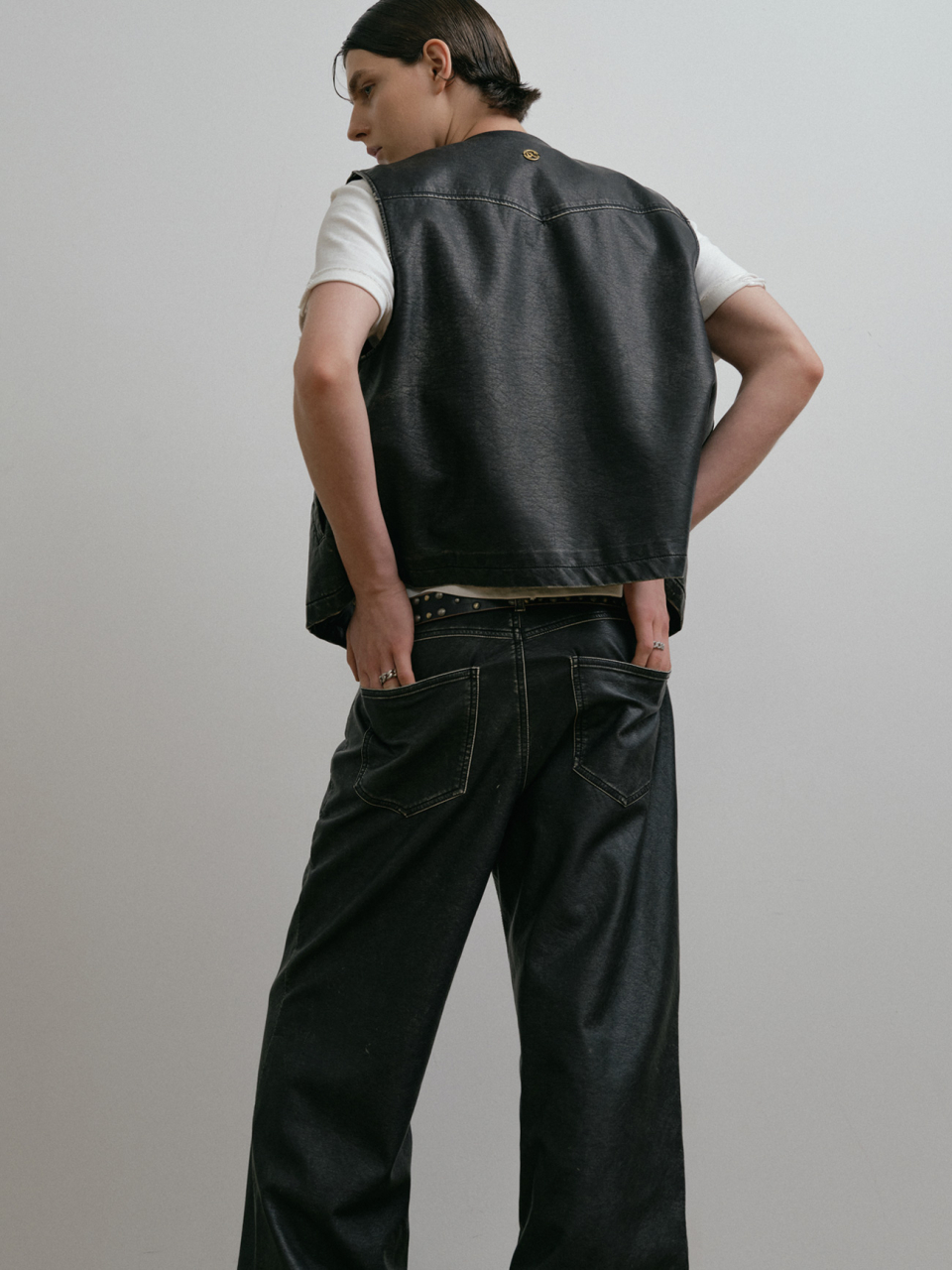 DUSTY BLACK WASHED FAUX LEATHER PANTS
