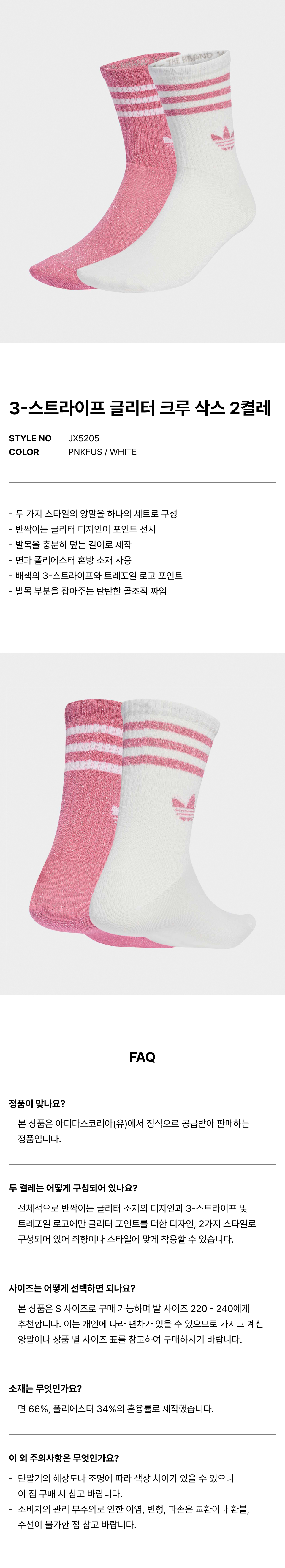 3-스트라이프 글리터 크루 삭스 2켤레 - 핑크:화이트 / JX5205