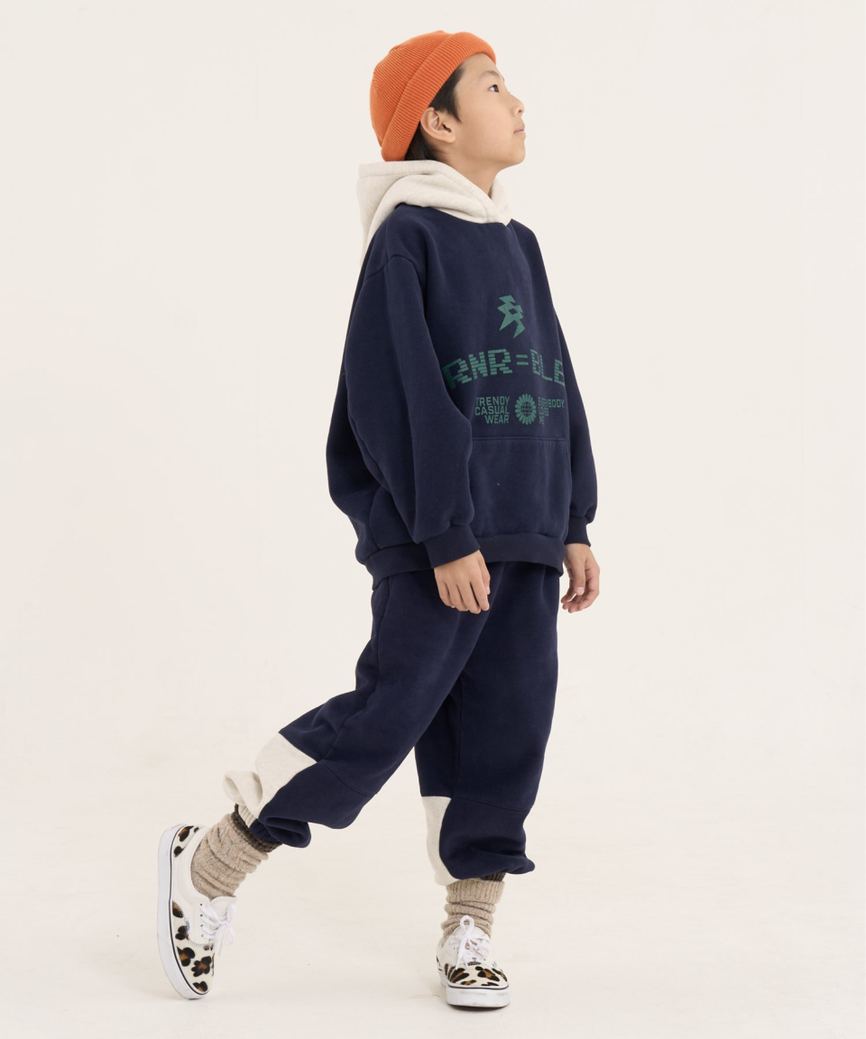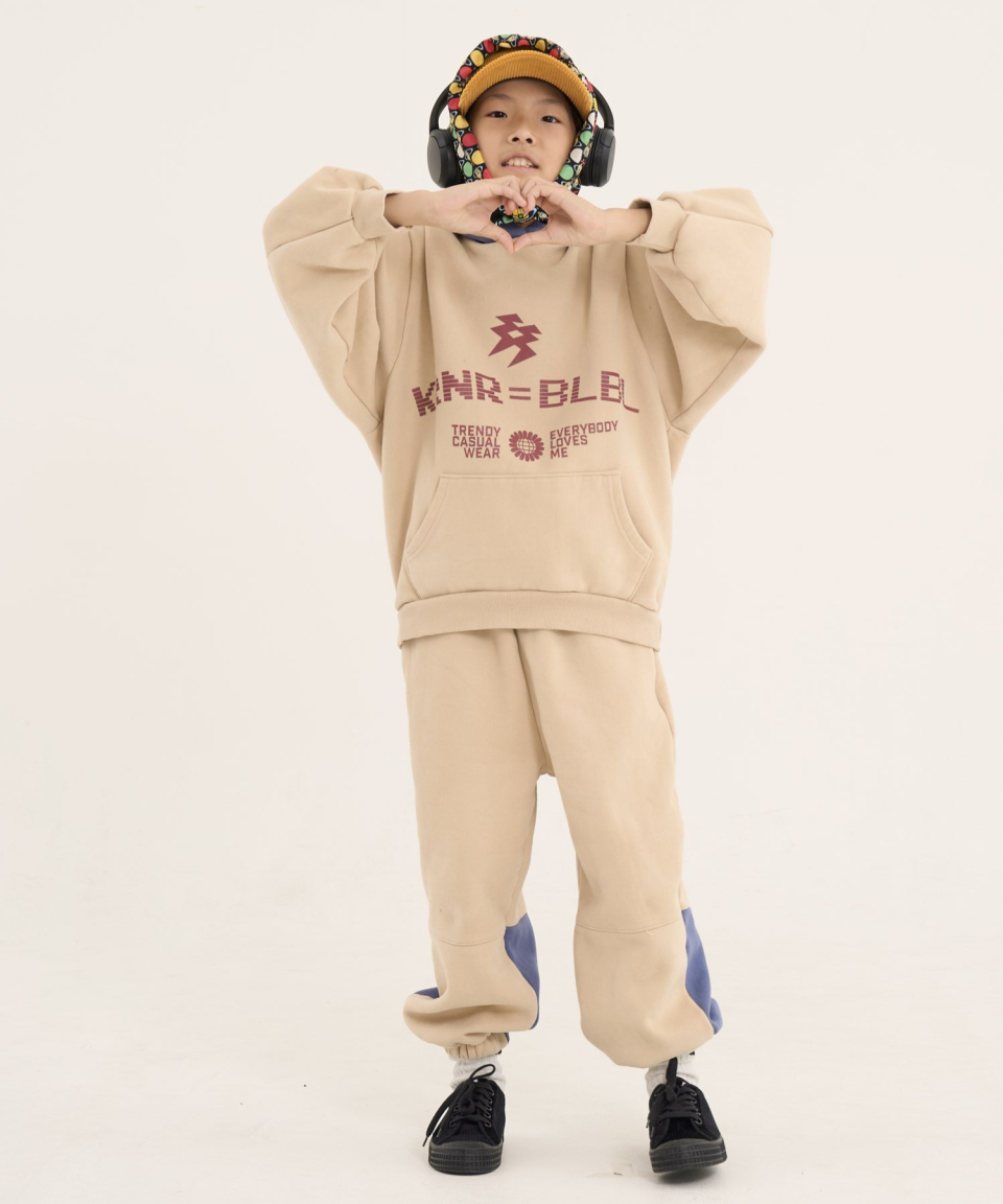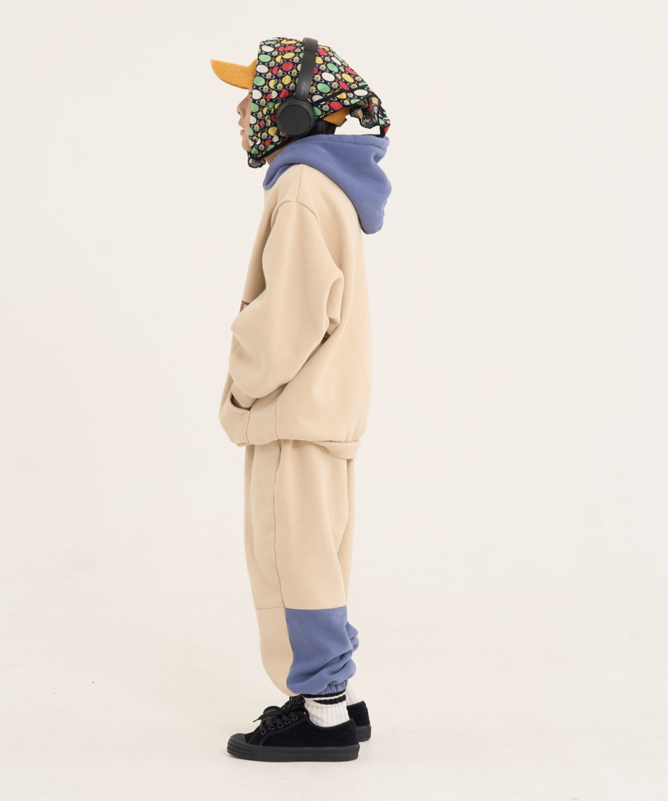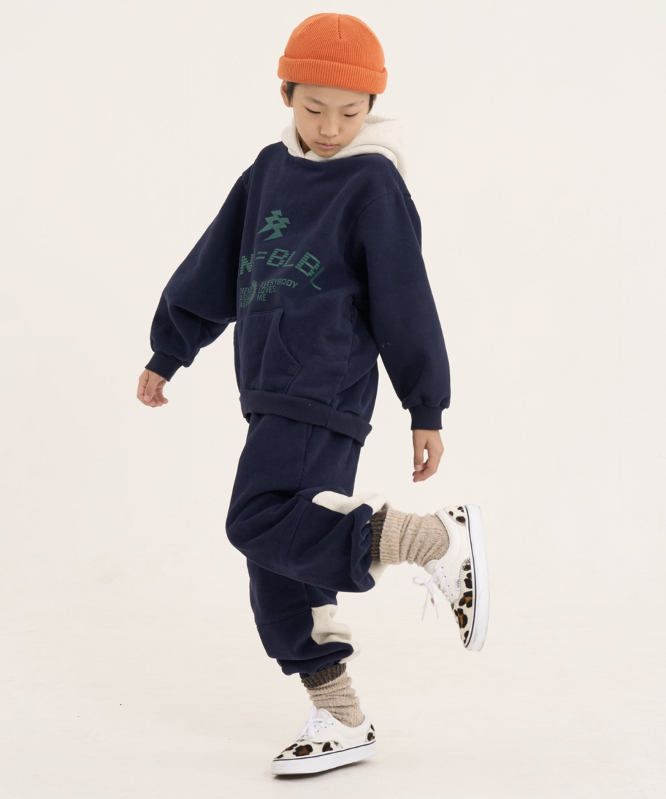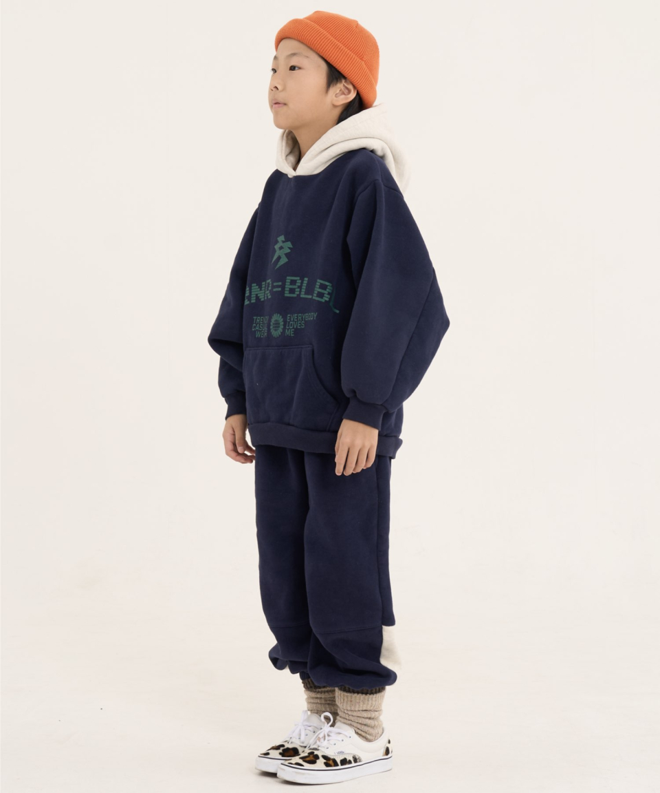 볼드 네임드 오버사이즈 주니어 컬러블록 후드-조거 양기모 셋업 네이비,베이지