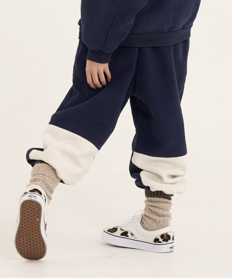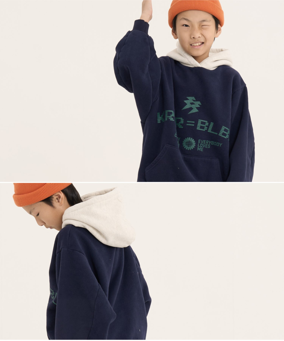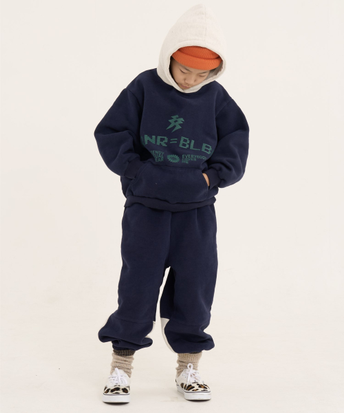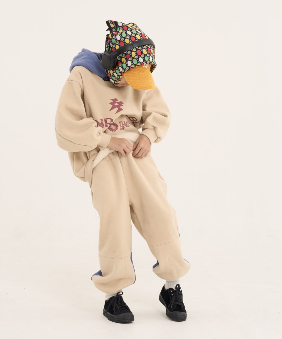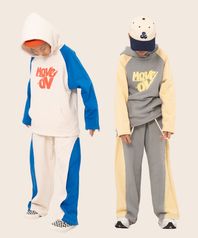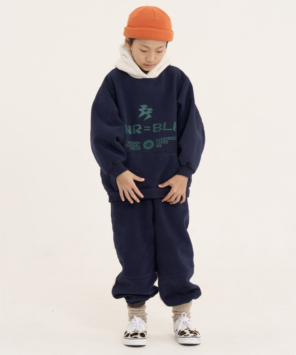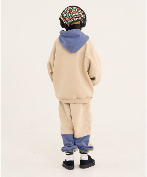 볼드 네임드 오버사이즈 주니어 컬러블록 후드-조거 양기모 셋업 네이비,베이지
