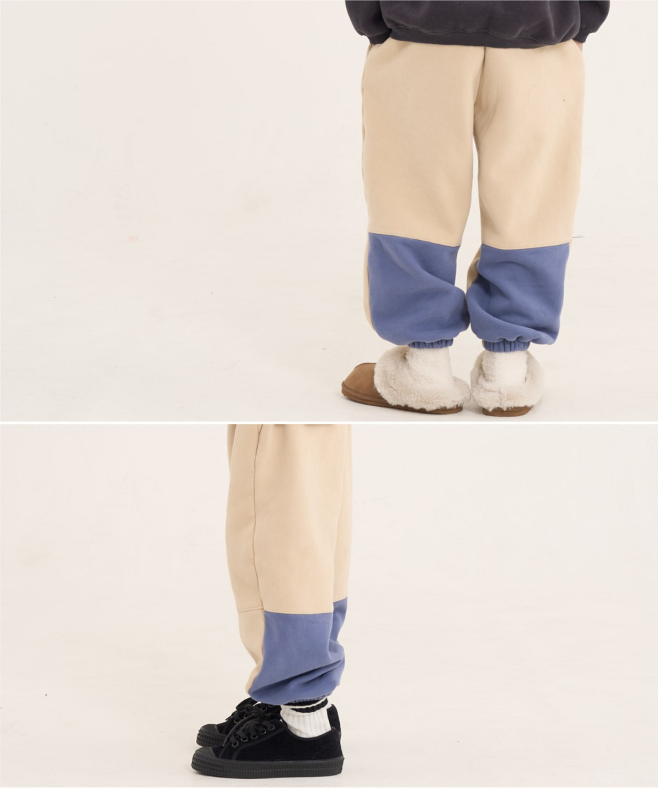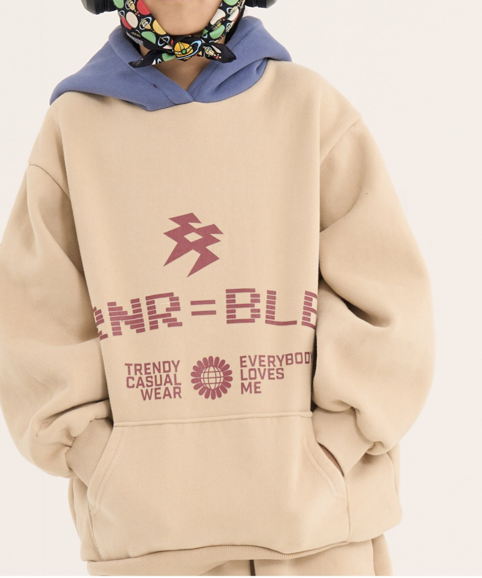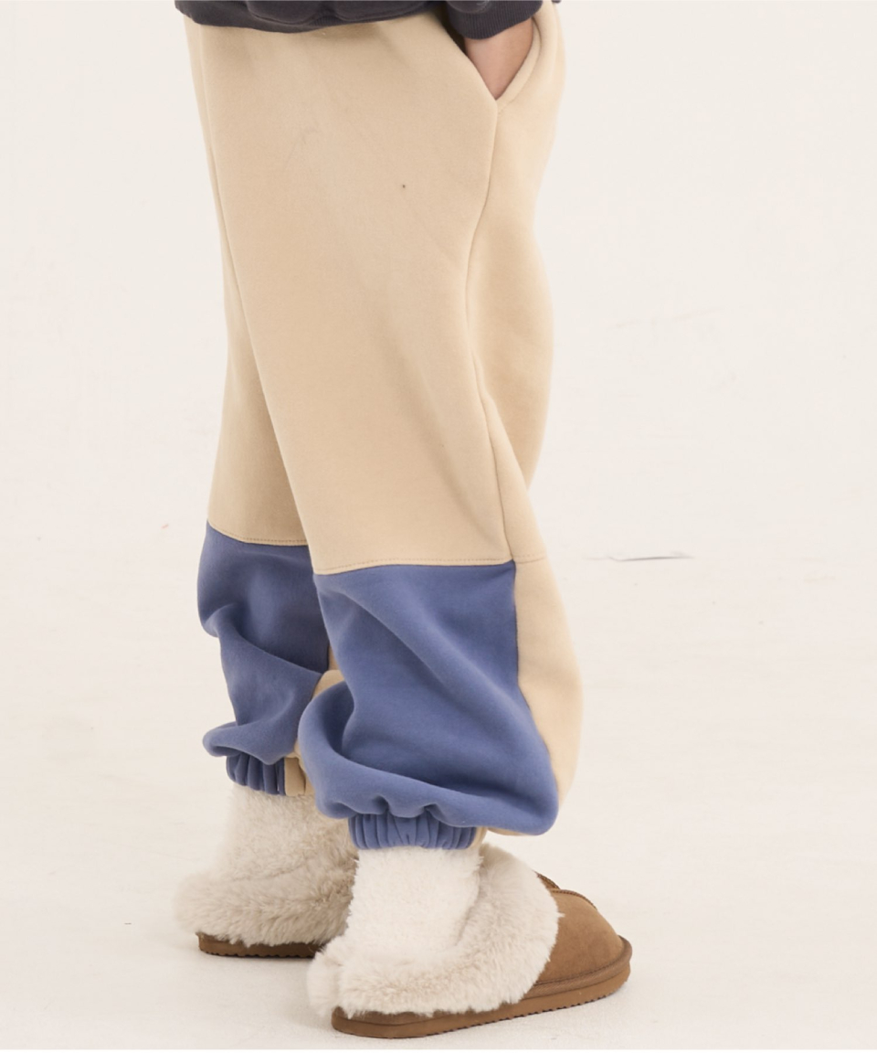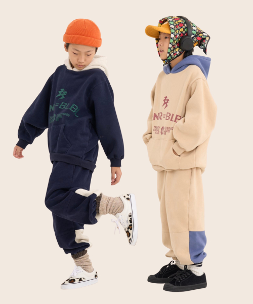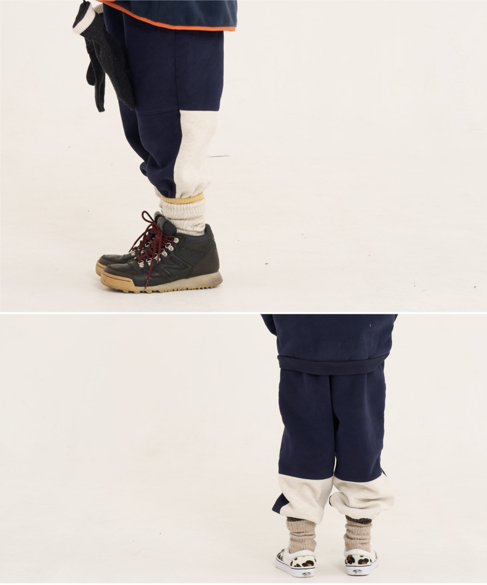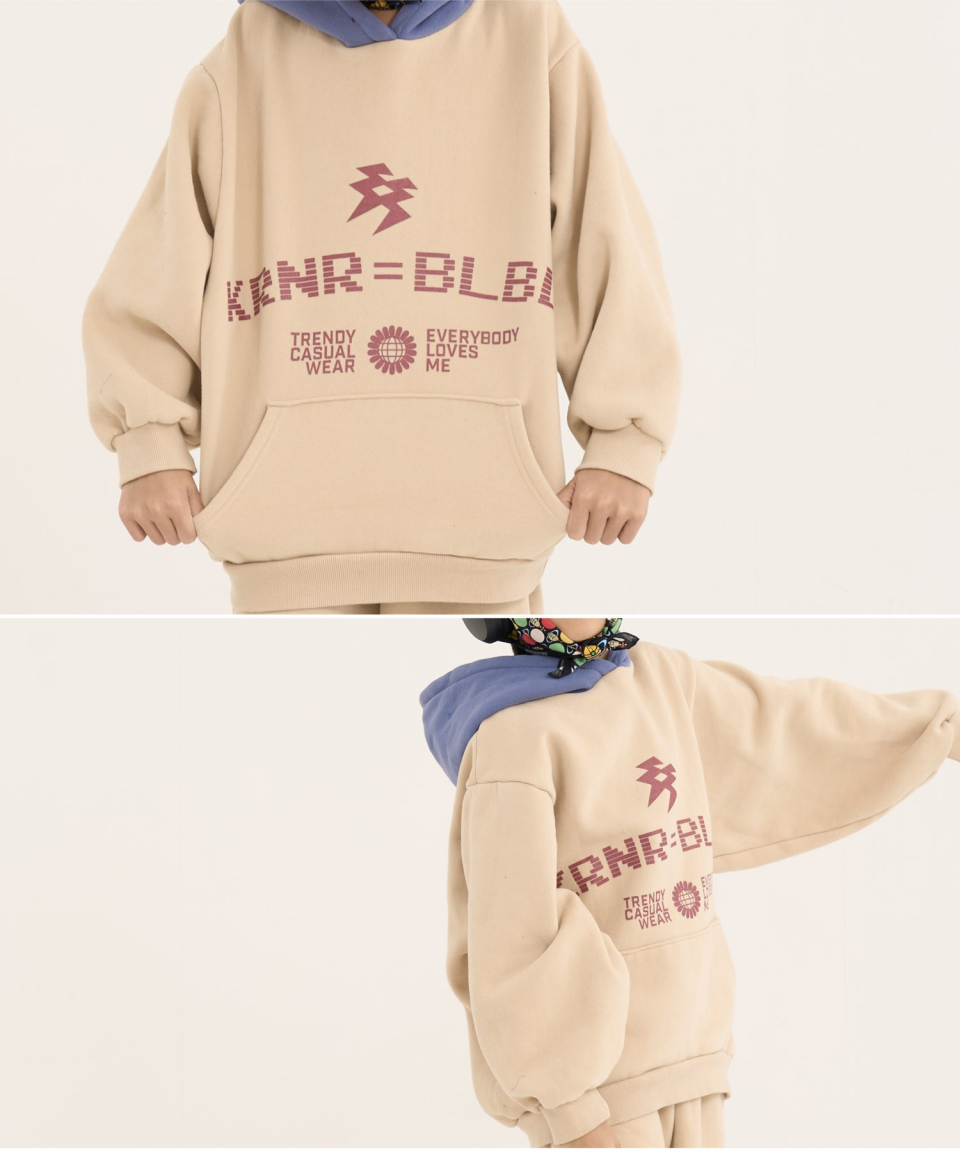 볼드 네임드 오버사이즈 주니어 컬러블록 후드-조거 양기모 셋업 네이비,베이지