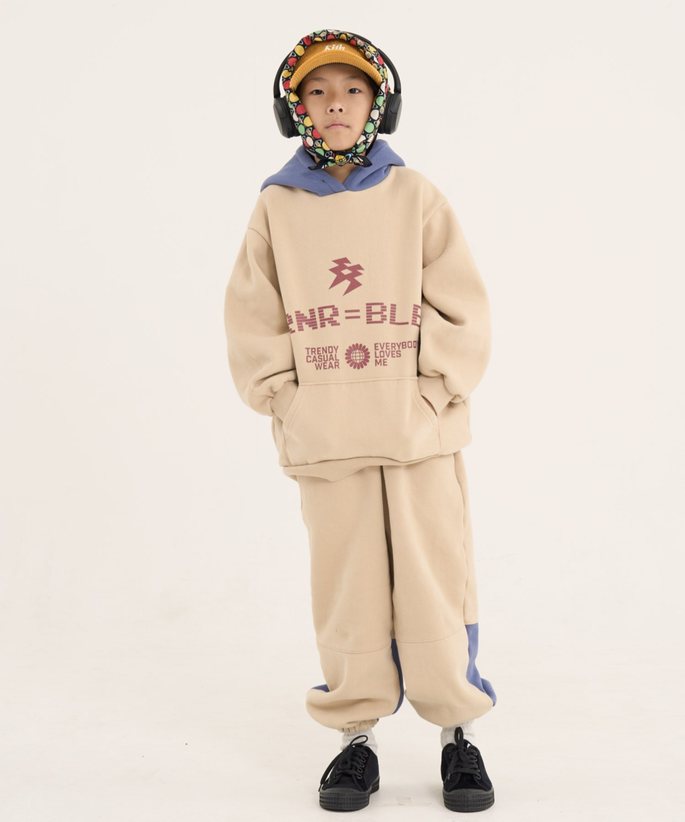 올데이 오버사이즈 후드-와이드팬츠 주니어셋업 블루, 옐로