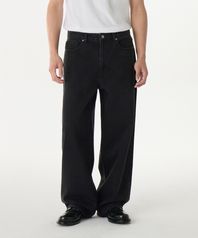 빅 와이드 데님 팬츠 [워시드 블랙]