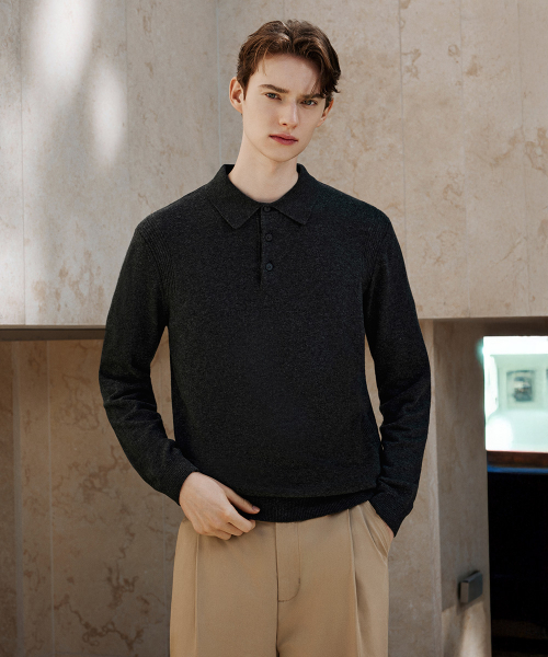 25FW 캐시미어 울 블렌드 카라 니트 차콜
