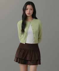 우먼즈 램스울 라운드 넥 크롭 가디건 [페일 그린]