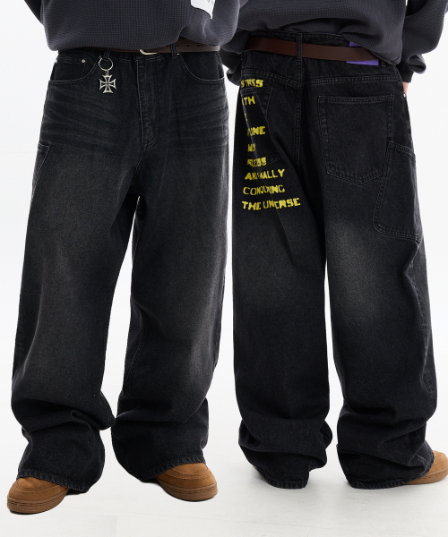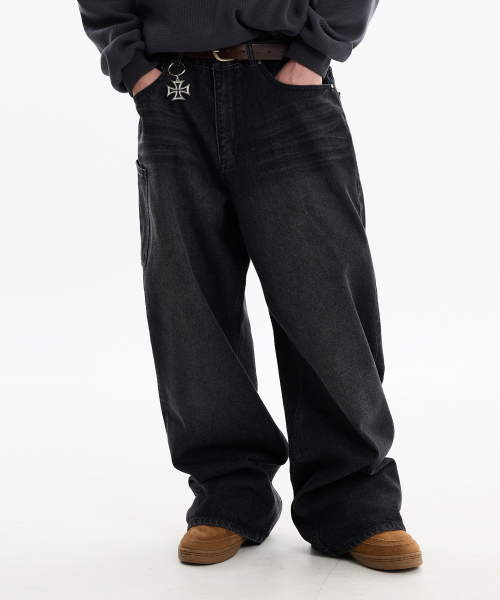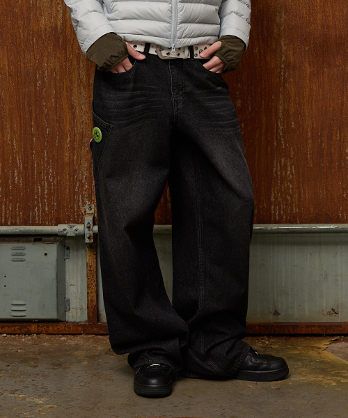 NO STRESS 빅 포켓 데님 팬츠 블랙