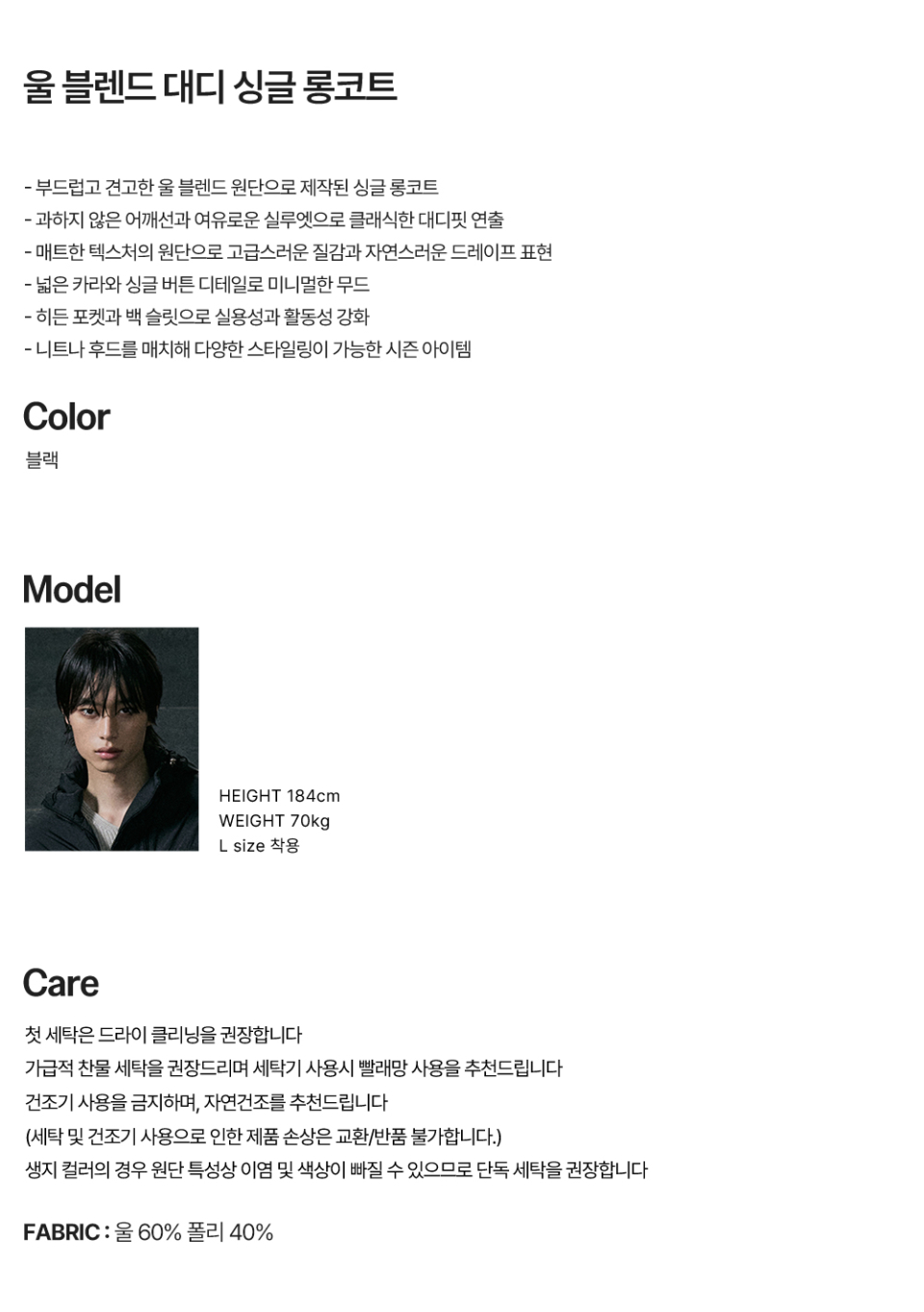 울 블렌드 대디 싱글 롱코트