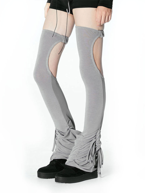 Thigh-High Leg Warmers with Cut-out and Fringe Point