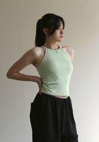 스포티한 스판덱스 소재와 니트 소재 믹스매치