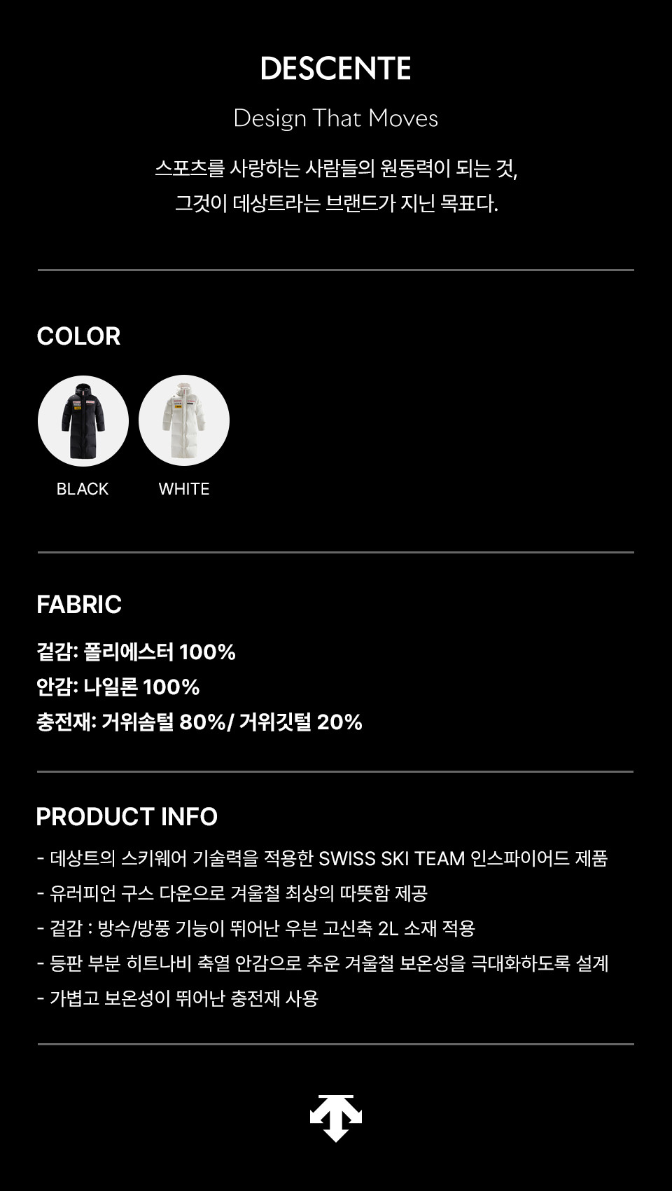 | 소재 | [BLK0]겉감:폴리에스터(100),[BLK0]안감1:나일론(100),[BLK0]안감2:폴리에스터(100),[BLK0]충전재:거위솜털(80)거위깃털(20),[WHT0]겉감:폴리에스터(100),[WHT0]안감1:나일론(100),[WHT0]안감2:폴리에스터(100),[WHT0]충전재:거위솜털(80)거위깃털(20) (입고 시기에 따라 정보가 상이할 수 있어, 수령하신 상품의 라벨을 참고하시기 바랍니다.) |