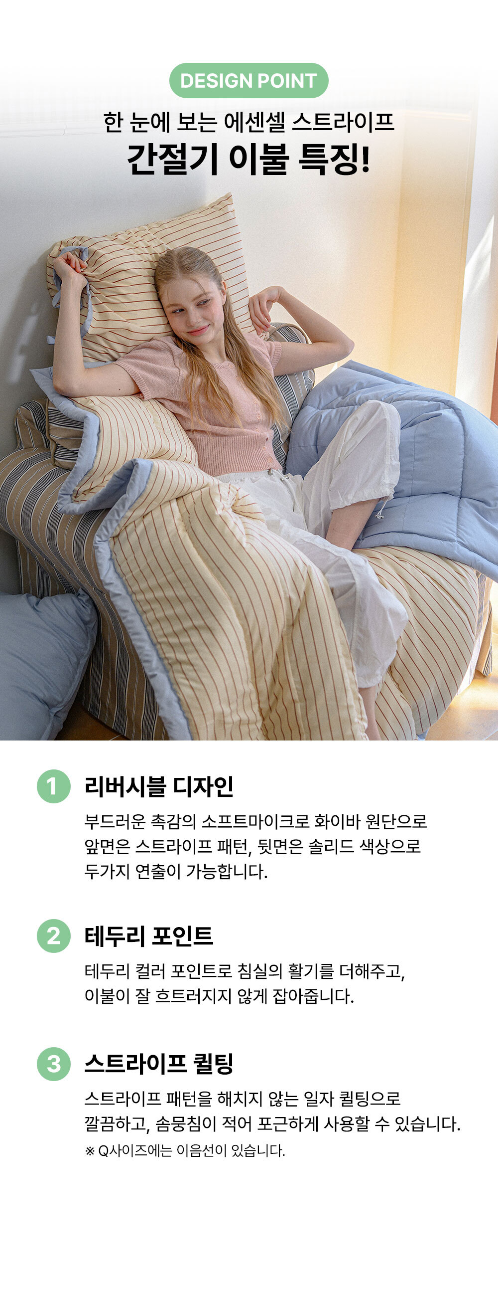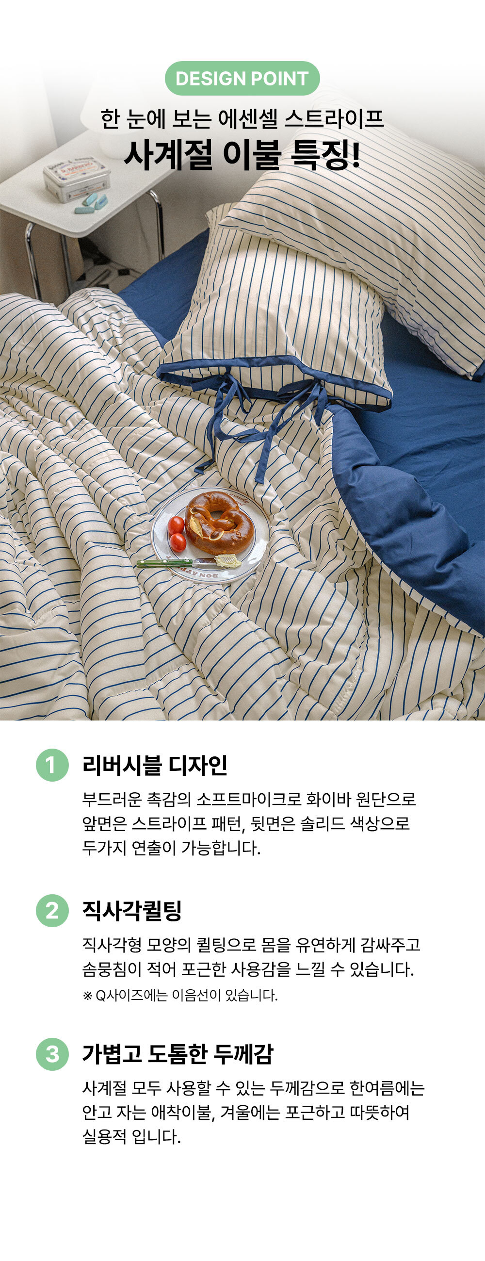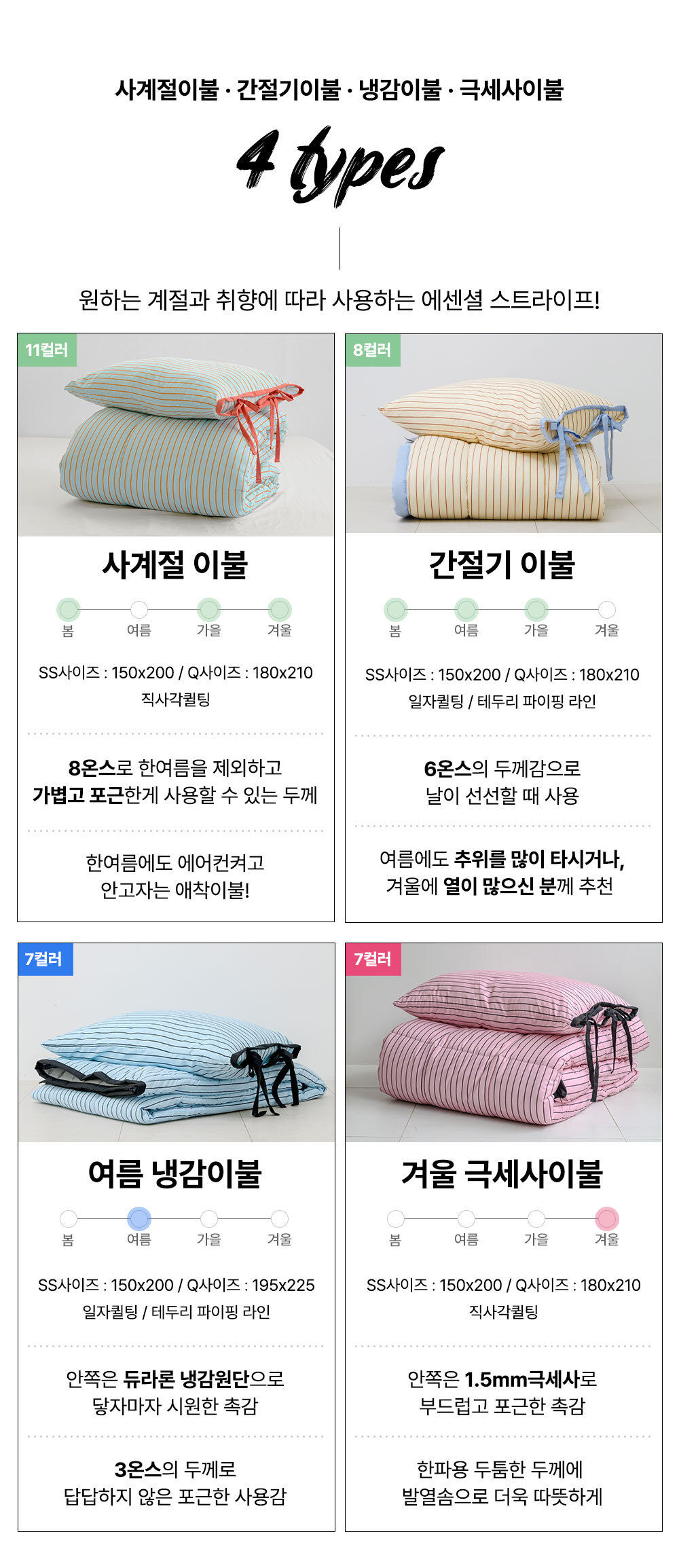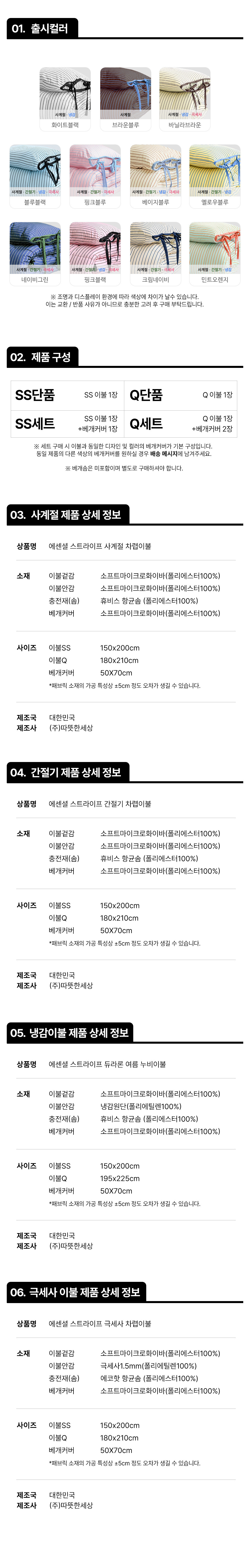 에센셜 스트라이프 포인트 항균 듀라론/간절기/사계절/극세사 이불베개세트 SS/Q 11컬러