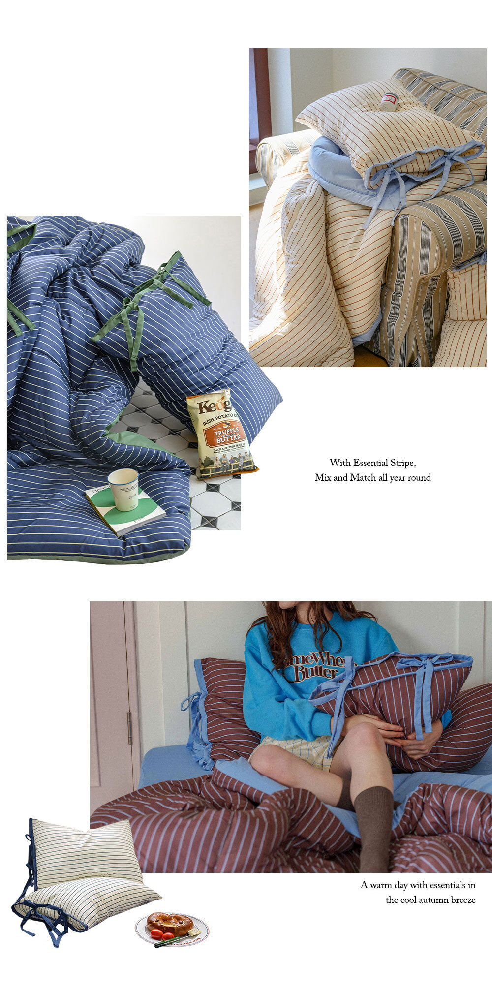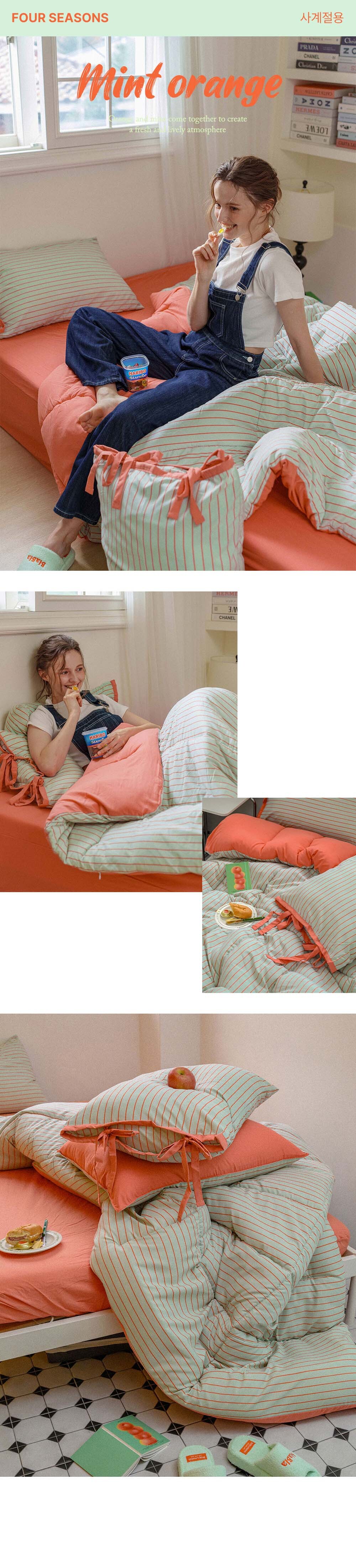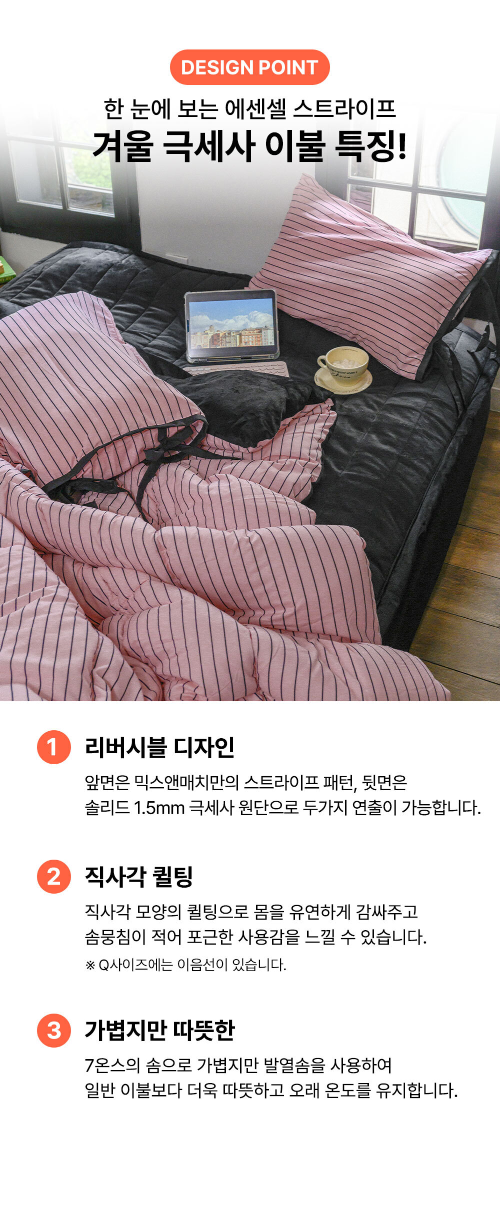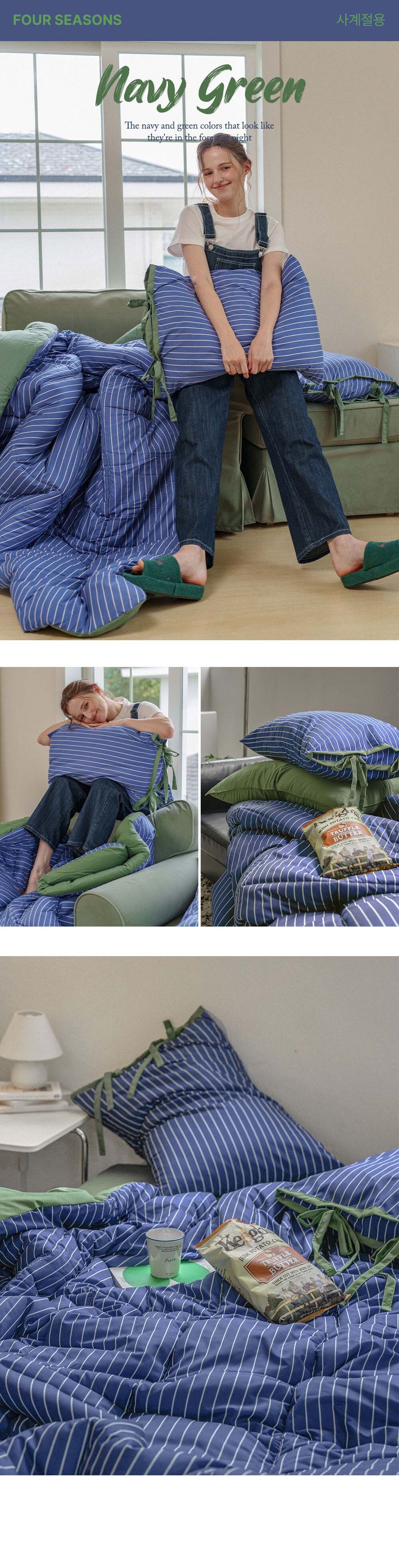 에센셜 스트라이프 포인트 항균 듀라론/간절기/사계절/극세사 이불베개세트 SS/Q 11컬러
