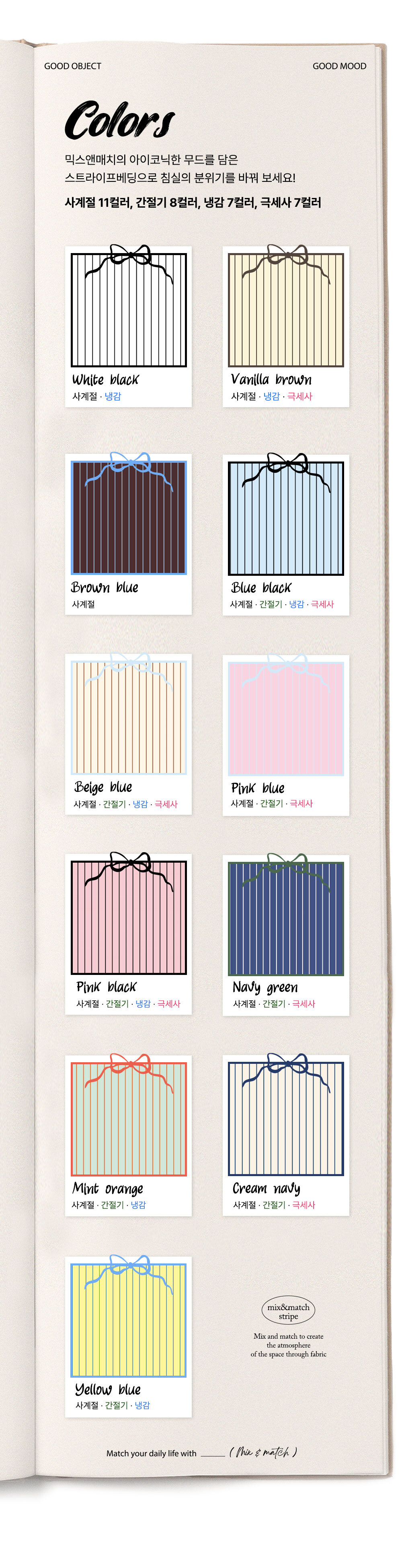 믹스앤매치(MIX&MATCH)는 침실에 컬러를 더한다는 콘셉트를 바탕으로 다양한 아이템을 레이어드하여 세상에 단 하나뿐인 나만의 침실을 연출할 수 있도록 제안합니다. 믹스앤매치의 디자인 개발실에서는 매일 다양한 소재와 패턴을 연구하고 개발하며, 고객의 편안한 숙면과 라이프스타일에 대해 고민합니다.