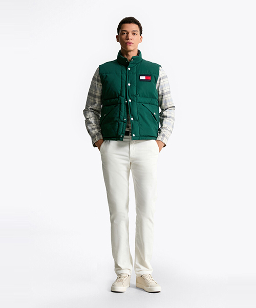 지퍼 플라이 여밈으로 착용이 간편하며, 백 포켓 위 플래그 자수 디테일이 포인트를 더합니다.