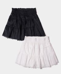 티어드 피치 스트라이프 프릴 레이스 밴딩 숏 캉캉 스커트 팬츠 _2COLOR