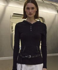 미니멀 더블 버튼 슬림핏 레이어드 후드 롱슬리브 _2COLOR