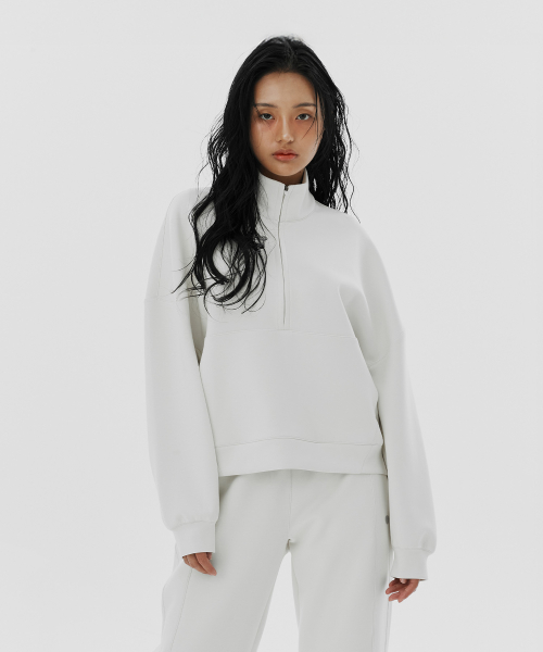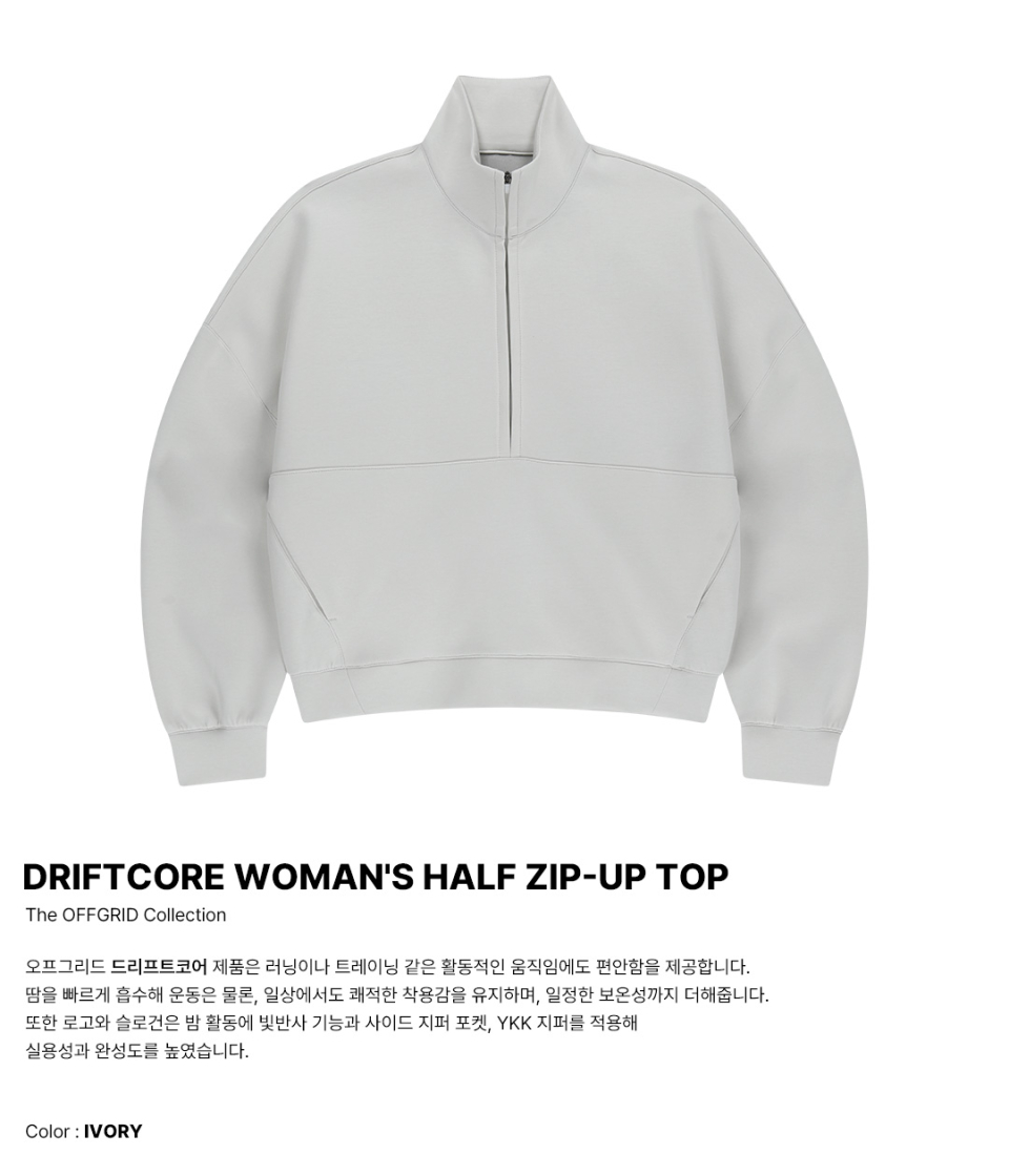드리프트코어 우먼스 하프집업 탑-아이보리