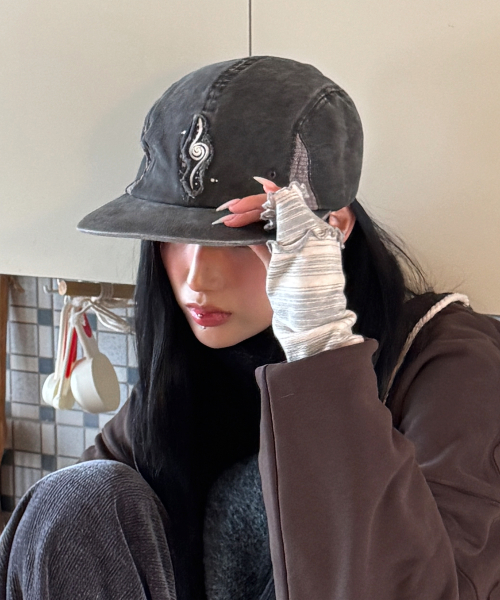 WXAC017 유로미도 아플리케 코튼 캠프캡 (BLACK)