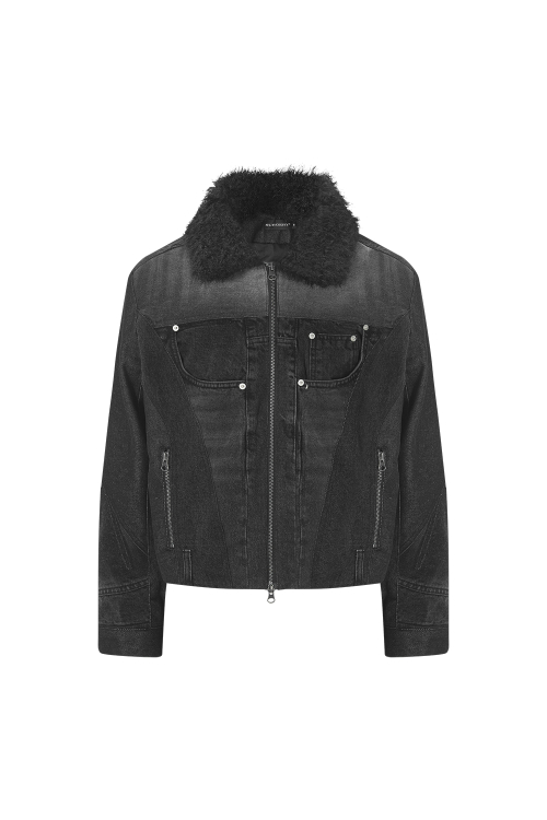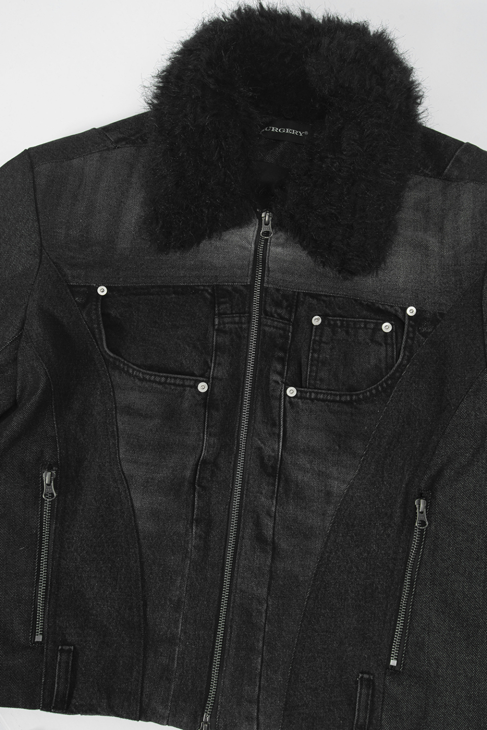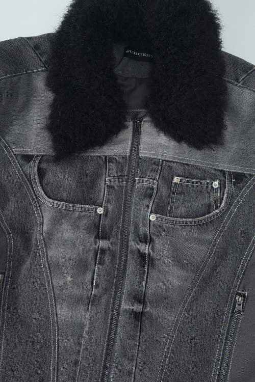 Detail Fur trimming collar Rebuild denim product Pant mixed outer