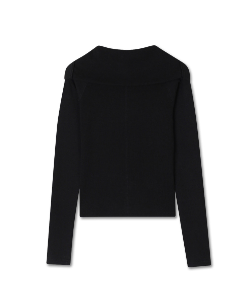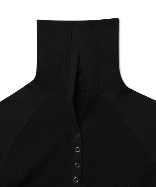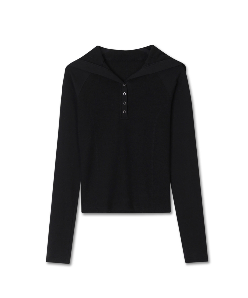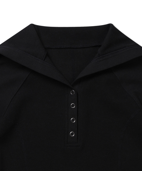버튼 업 카라 골지 탑 블랙