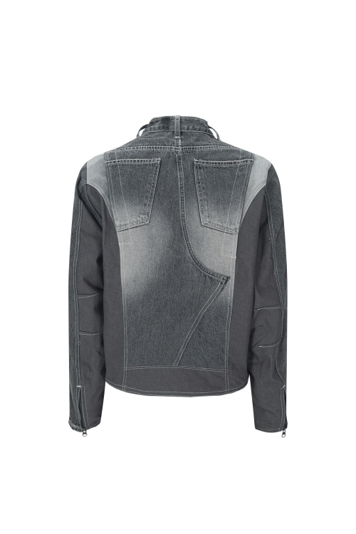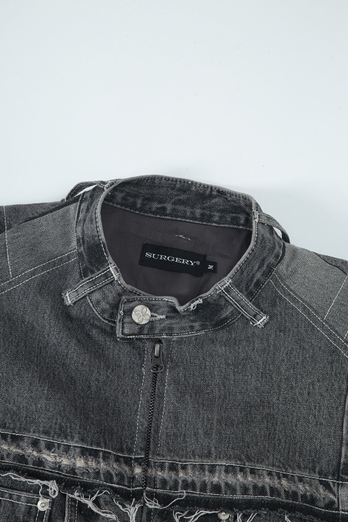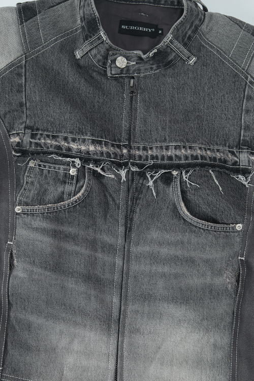 데님 바이커 자켓 그레이