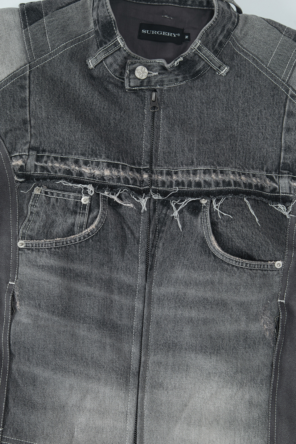 써저리(SURGERY)는 ‘새 생명을 불어넣는다’는 의미에서 의학적 수술과 맥락을 같이하는 브랜드입니다. 해체주의에 뿌리를 두되 파괴에 머무르지 않고, 매 시즌마다 옷을 해체하고 다시 조합하여, 수술실처럼 무한한 가능성을 실험하는 공간을 지향합니다.