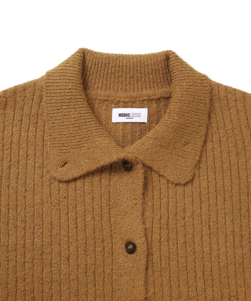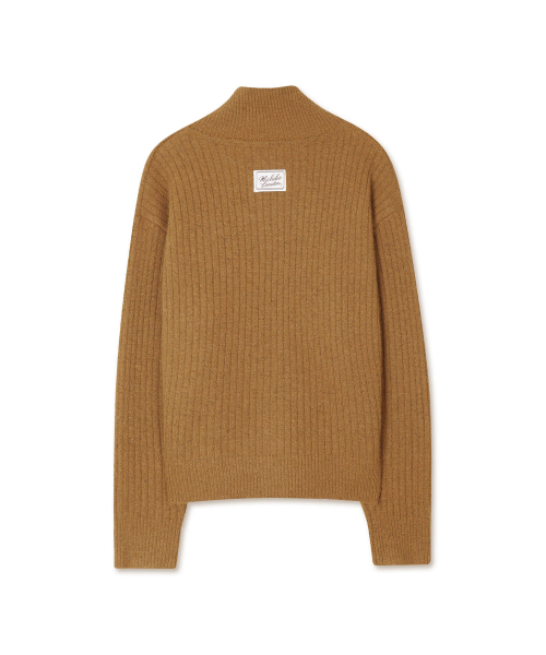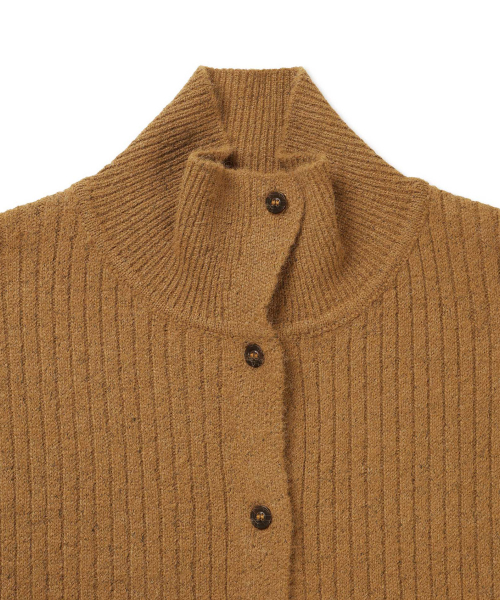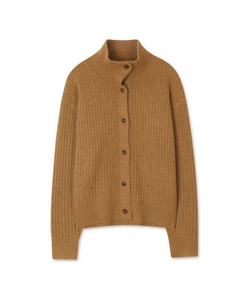 하이 카라 넥 울 가디건 앰버 브라운