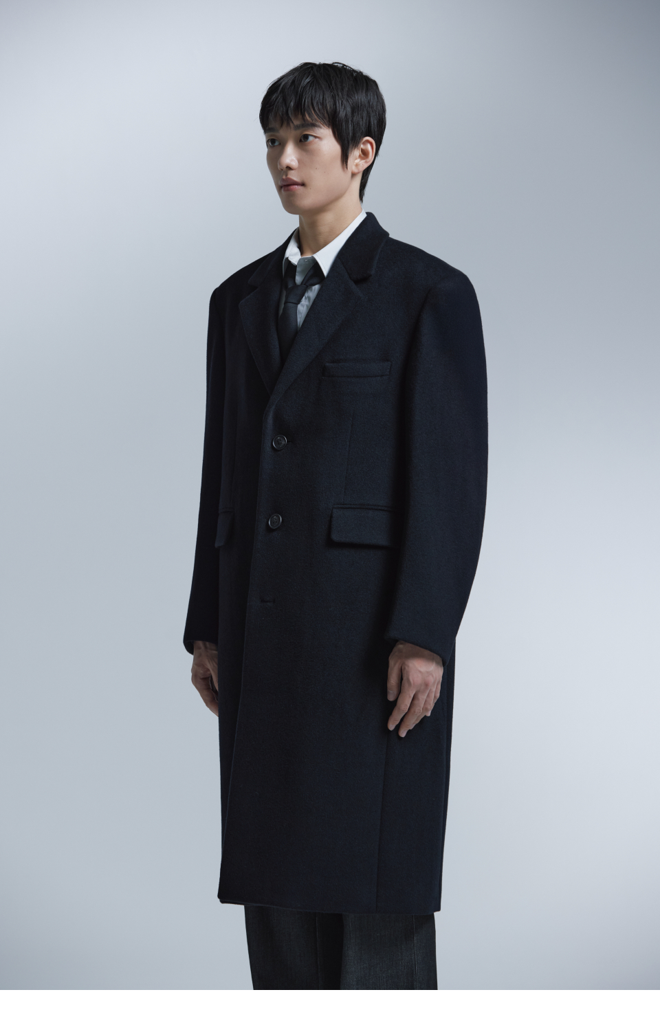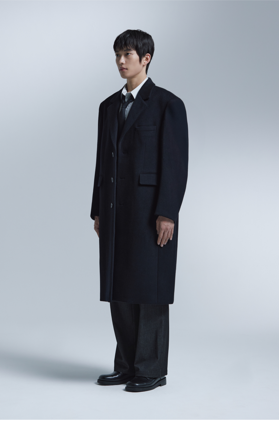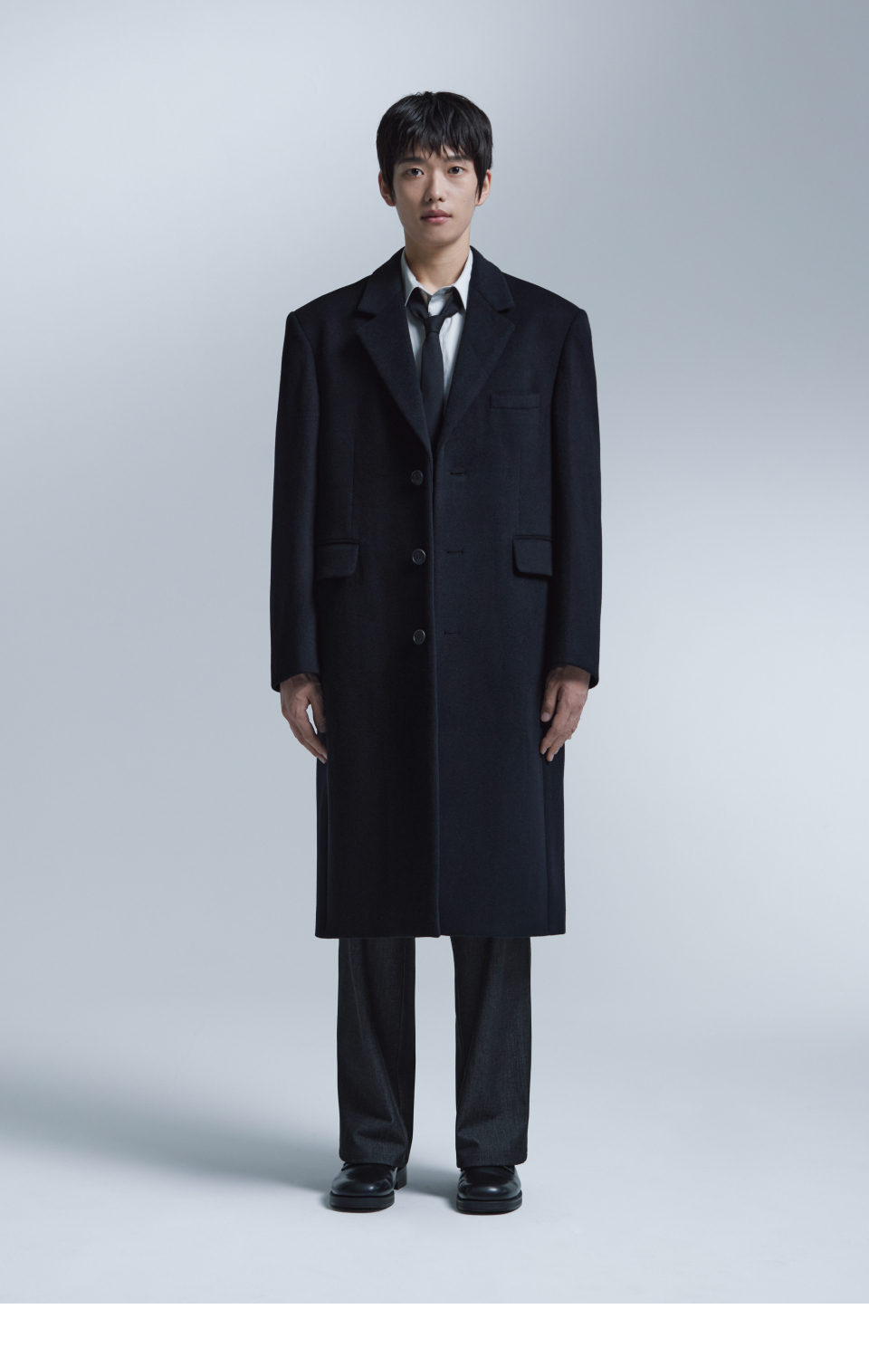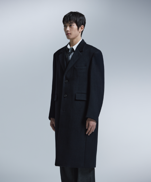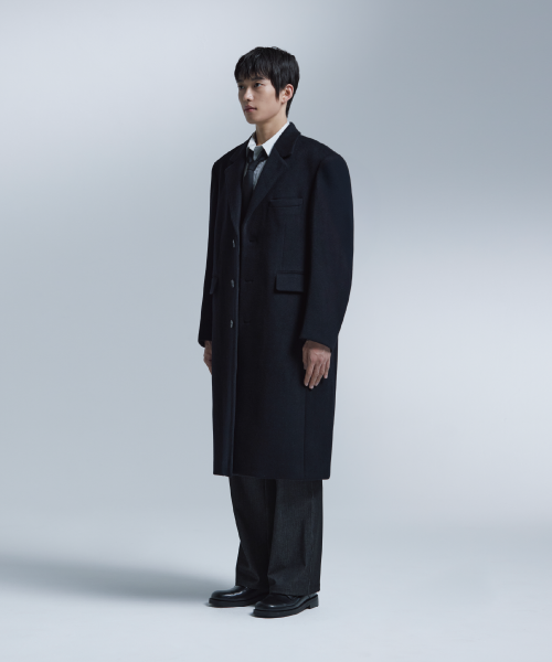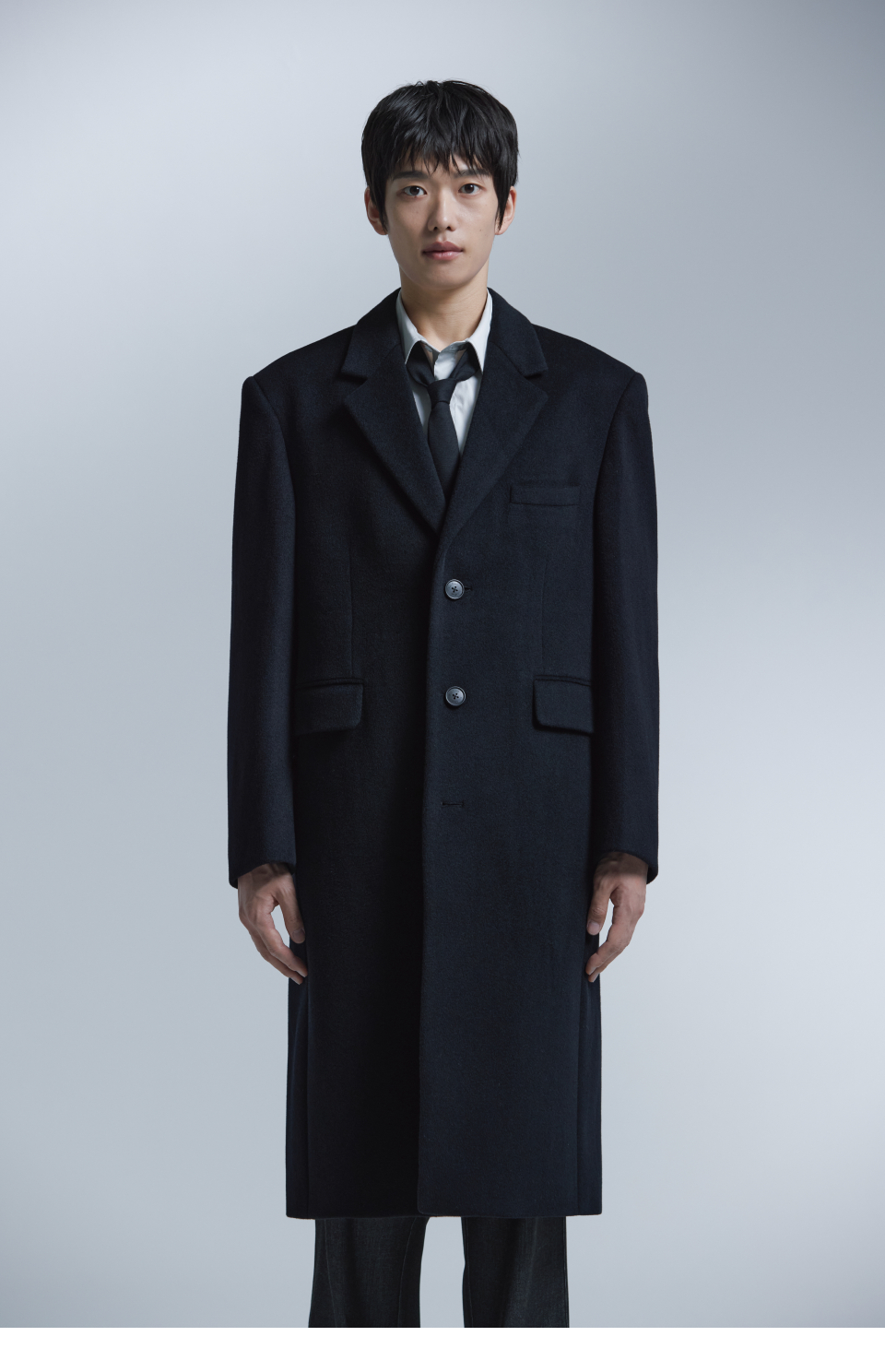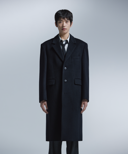 [이도현 PICK] 캐시미어 블렌드 대디 숄더 싱글 롱 코트 [블랙]