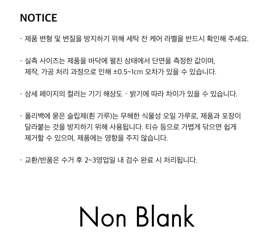 넌블랭크(NONBLANK)는 오래도록 소유하고 싶은 것에 대한 고찰에서부터 시작하였습니다. '본질에 대한 충실함'을 바탕으로 높은 완성도의 제품을 통해 브랜드만의 자연스럽고 미니멀한 스타일링을 제시합니다.