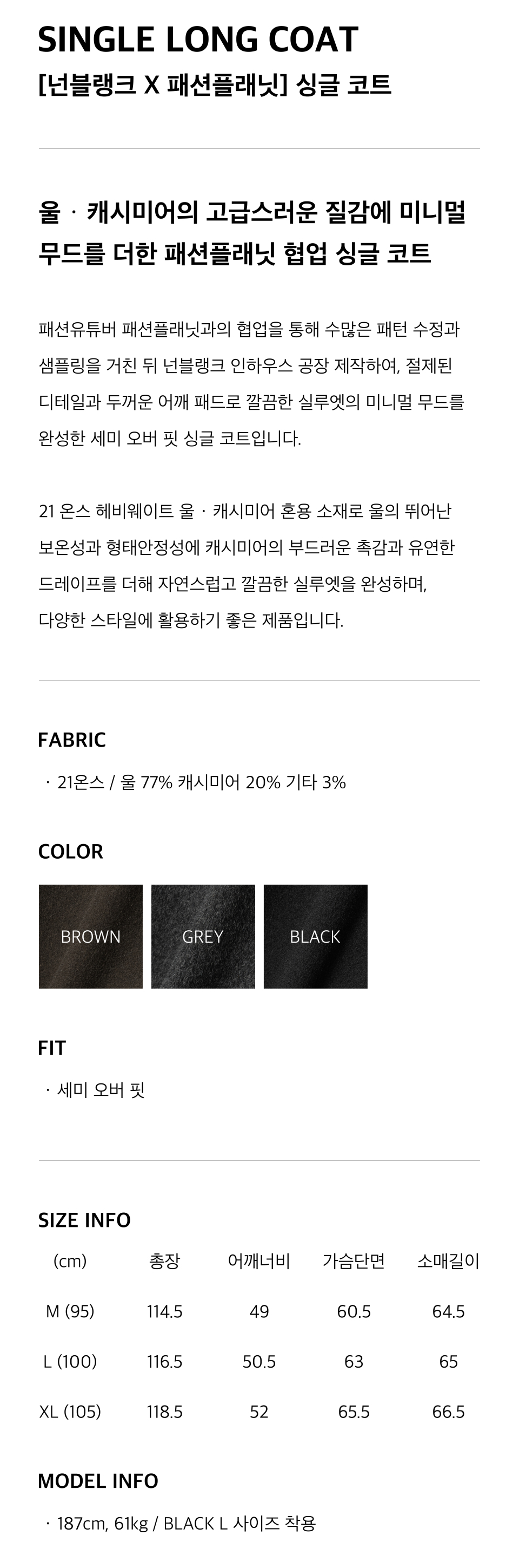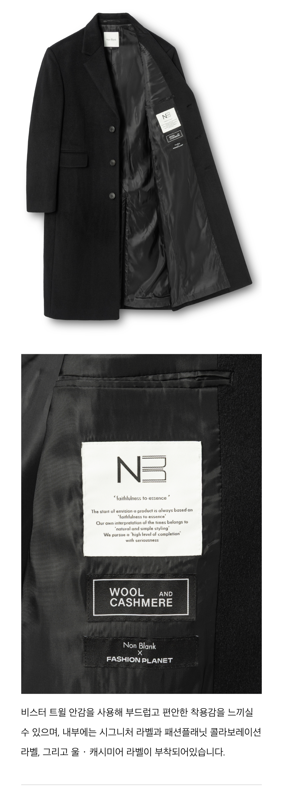 [넌블랭크x패션플래닛] 싱글 롱 코트_BLACK