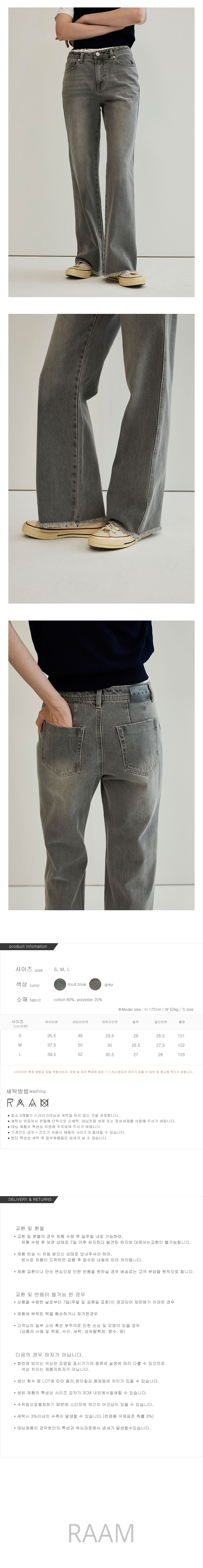 람(RAAM)은 25년의 데님 캐주얼 제작 경력을 바탕으로 뛰어난 핏감의 제품을 제작하여 선보이는 브랜드입니다. 친환경 워싱으로 안전하게 입을 수 있는 데님을 선보이며, 도시적인 느낌의 데님을 표현하고자 합니다.