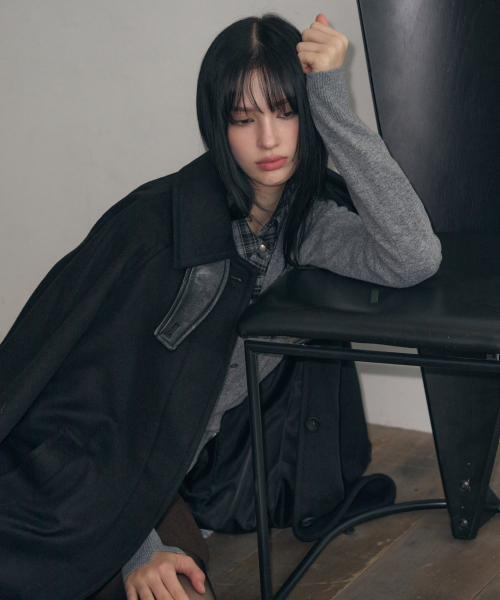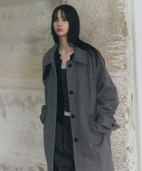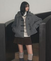 캐시미어 멜톤 더플 후디 숏 코트 [GREY]