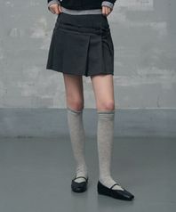 더블 스트랩 플리츠 미니 스커트 [CHARCOAL]