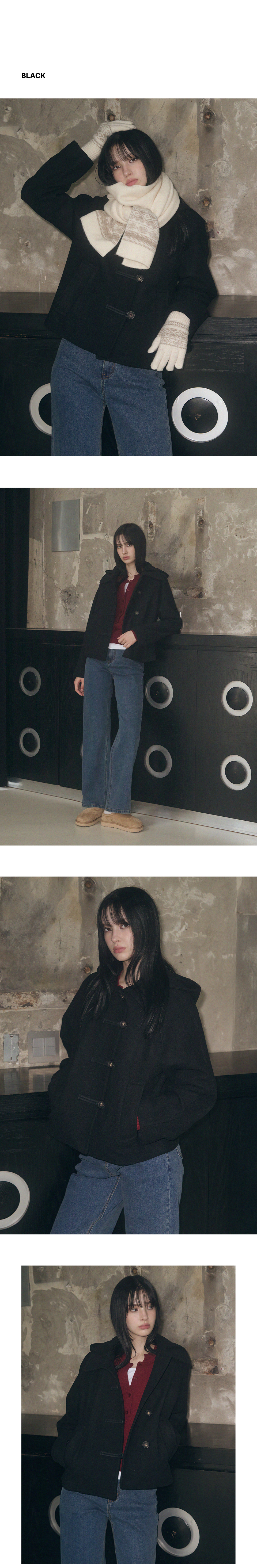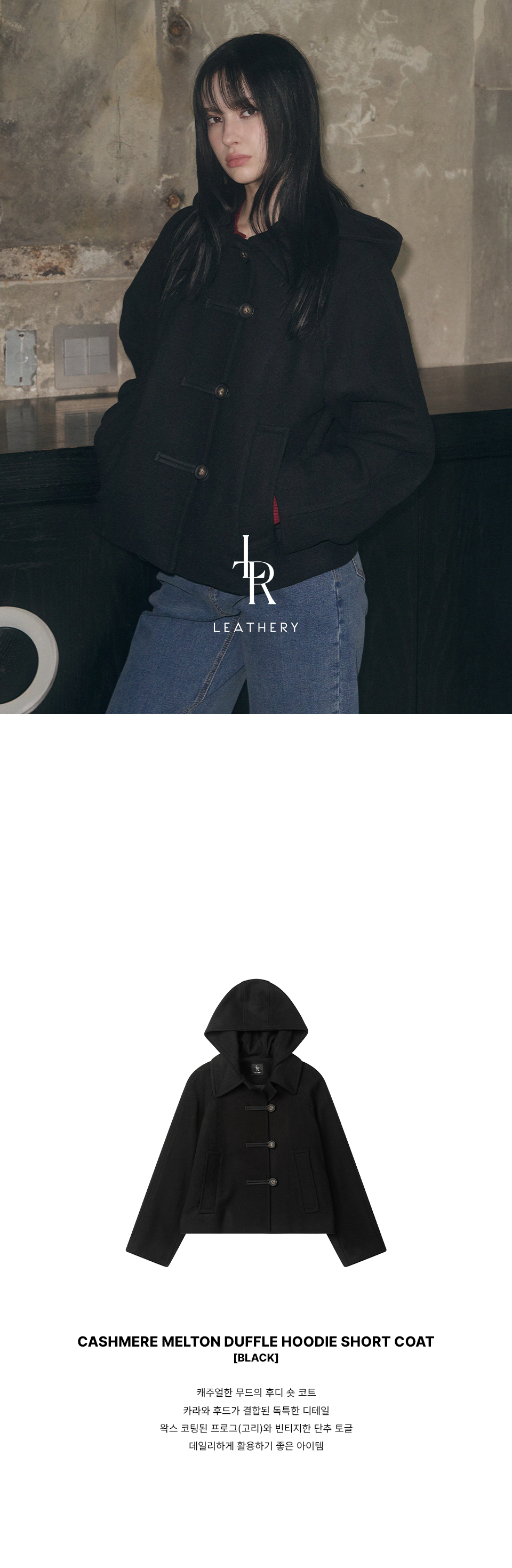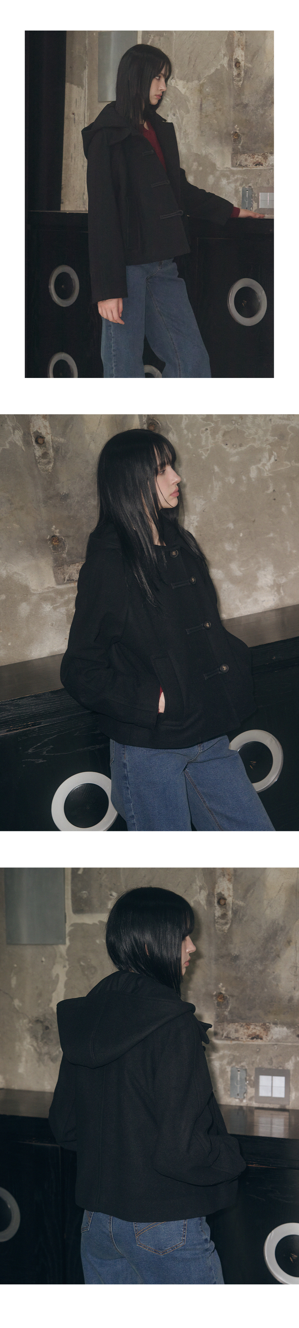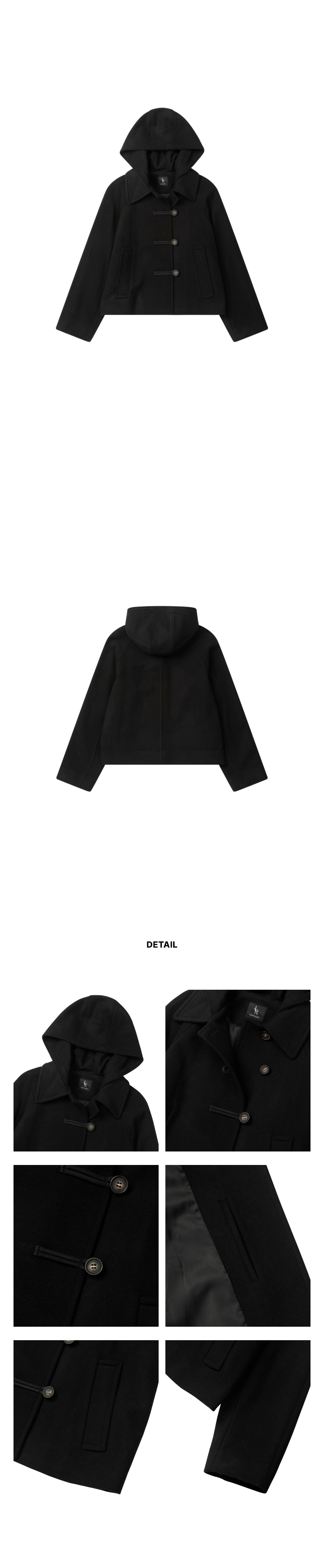 캐시미어 멜톤 더플 후디 숏 코트 [BLACK]