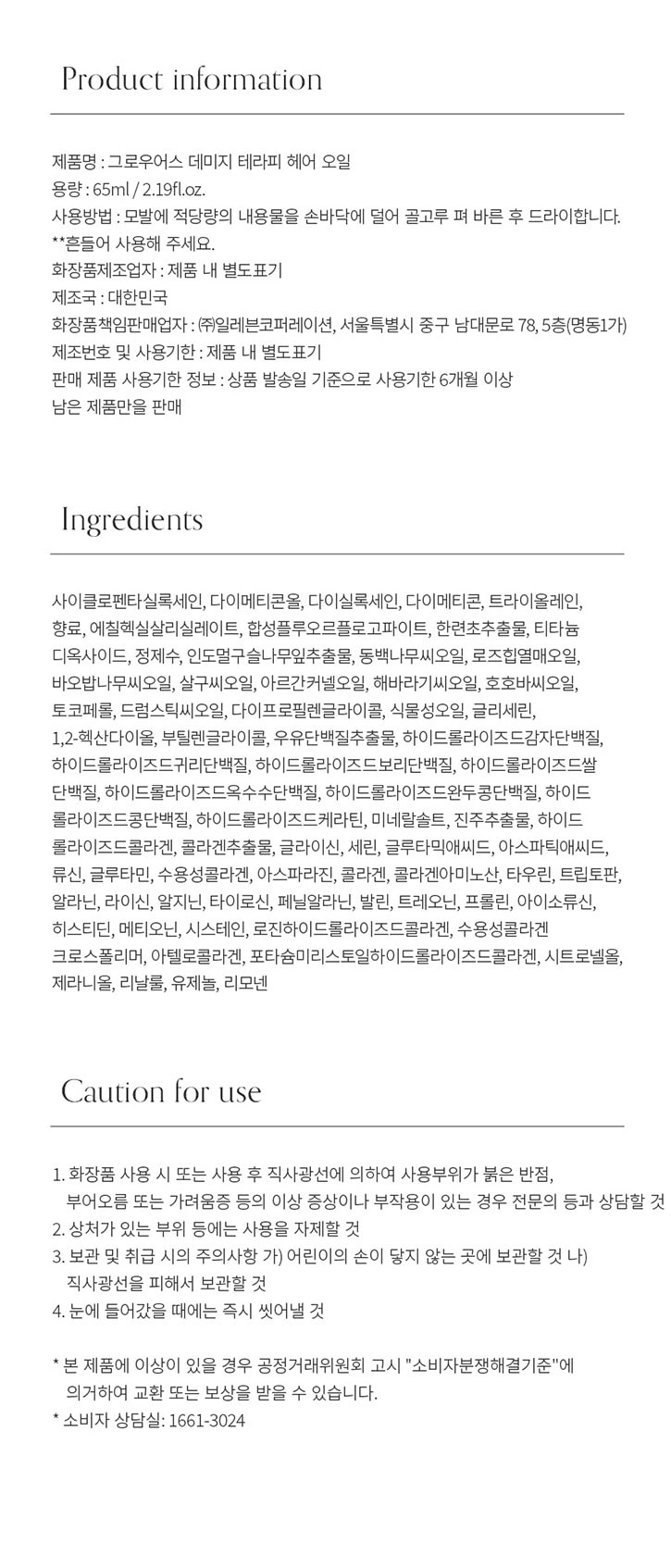데미지 테라피 헤어 오일 65mlX2