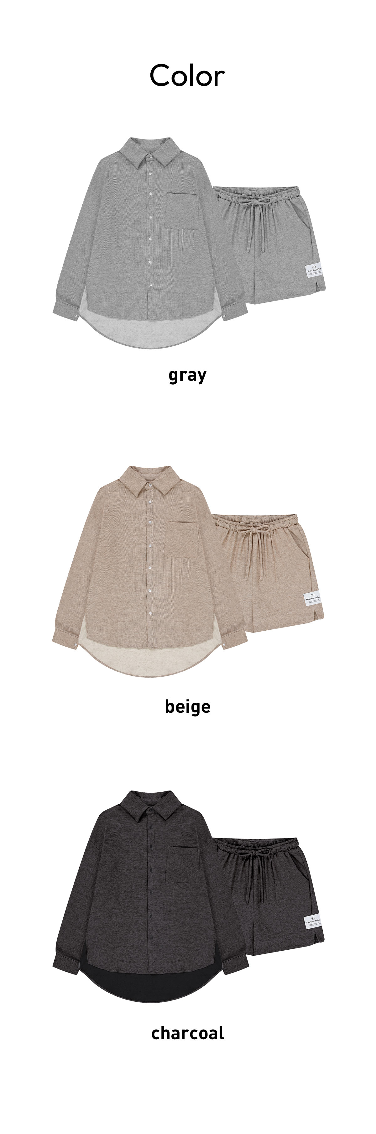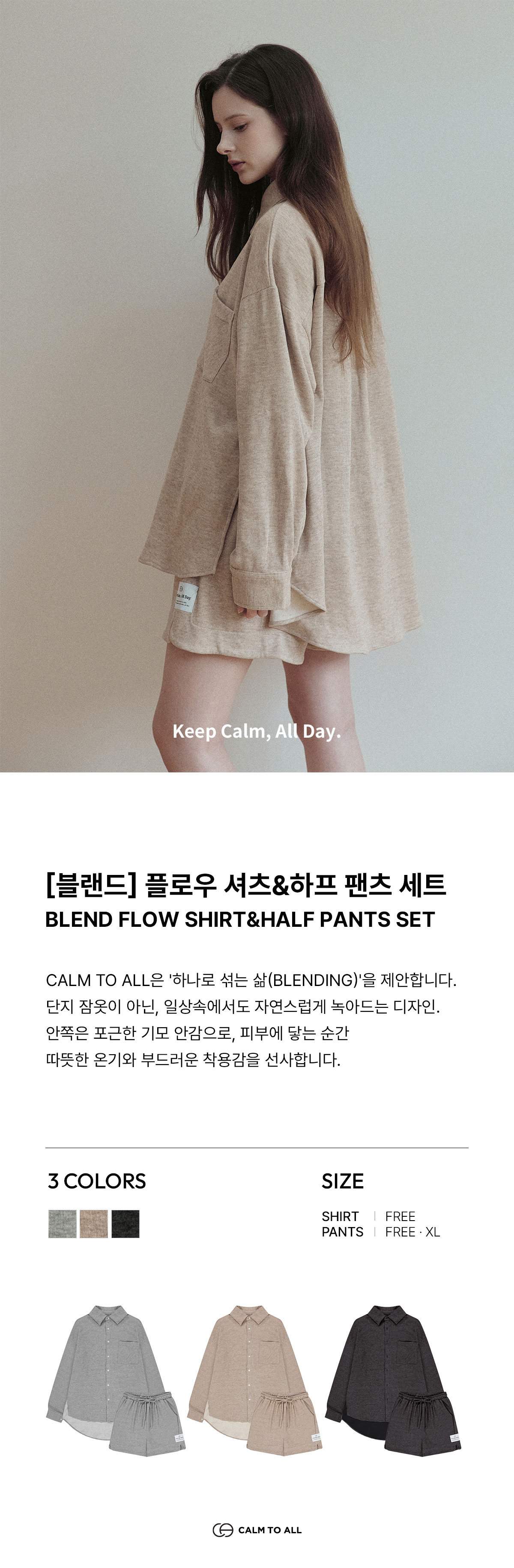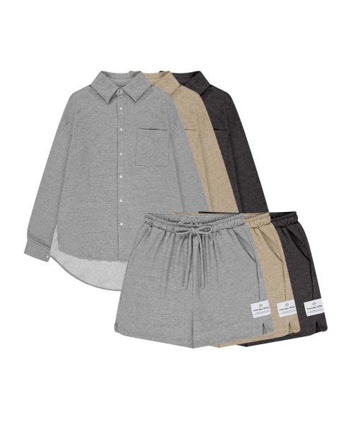 [블랜드] [SET] 플로우 기모 셔츠&하프팬츠 세트 3colors