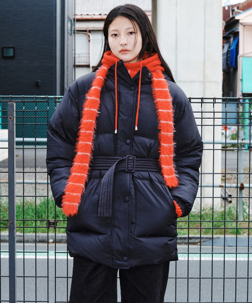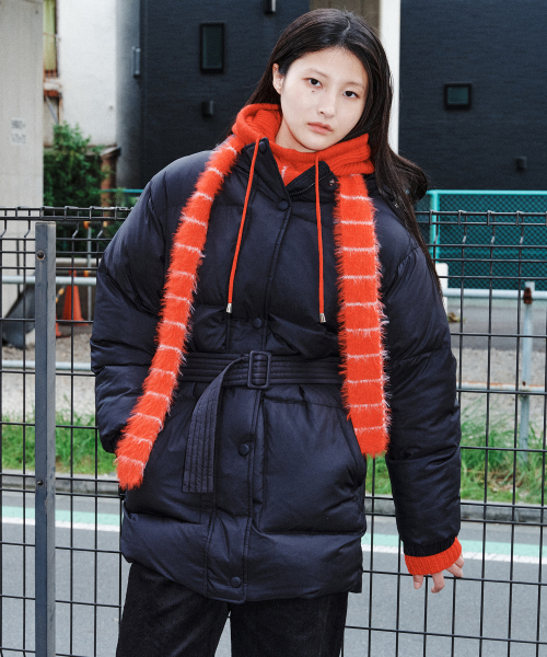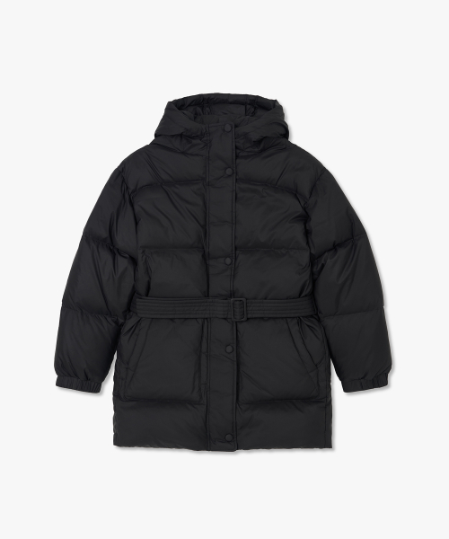 벨티드 다운 후드 점퍼 블랙