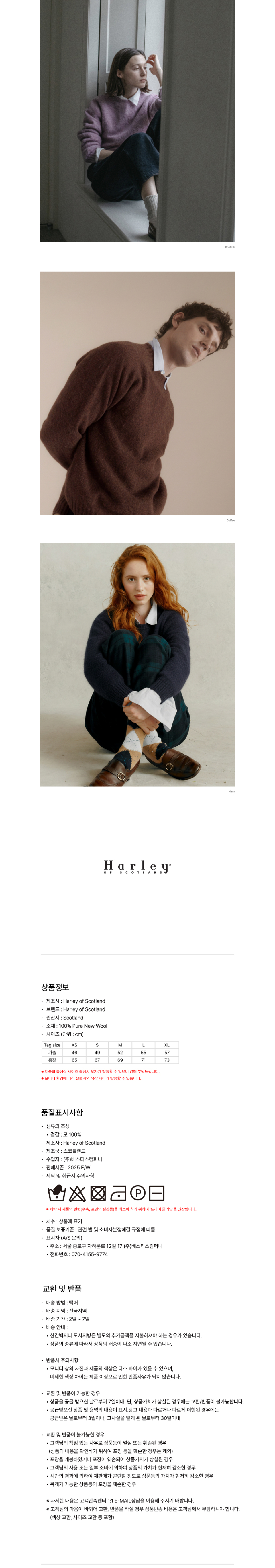 할리오브스코틀랜드(HARLEYOFSCOTLAND)는 1929년 스코틀랜드 북부에서 시작된 바다에 대한 동경과 스코틀랜드 북부 해안의 아름다운 자연을 닮은 스웨터를 만드는 브랜드입니다. 다양한 울 소재와 접목시켜 우수한 원사와 세심한 니팅을 바탕으로 니트웨어를 만듭니다.