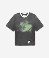스마일리 페이스 프린트 디스트레스드 반소매 티셔츠 - 블랙 / J14TS762BLACK