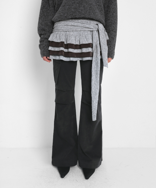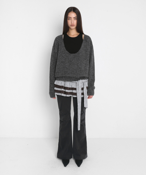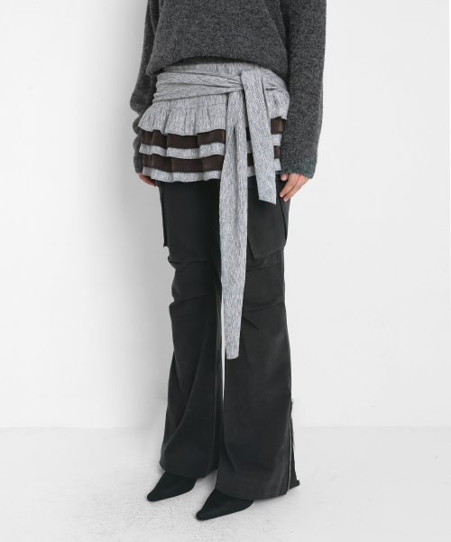 PLEATED KNIT MINI SKIRT_MELANGE GREY