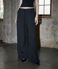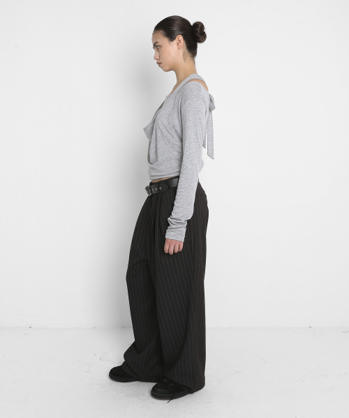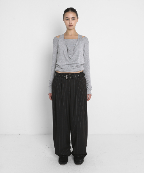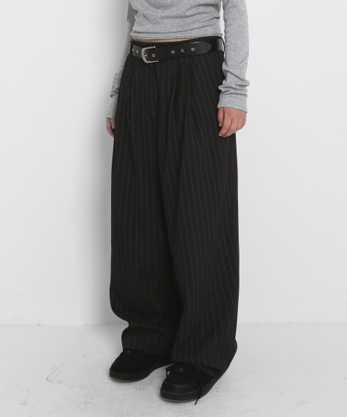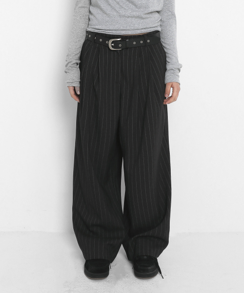 BALLOON STRIPE WOOL SLACKS_CHARCOAL