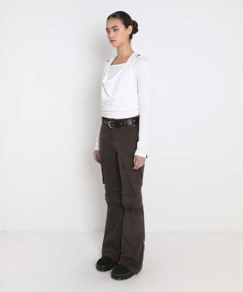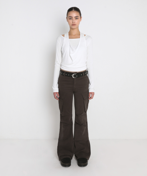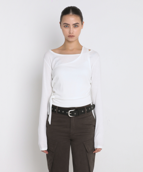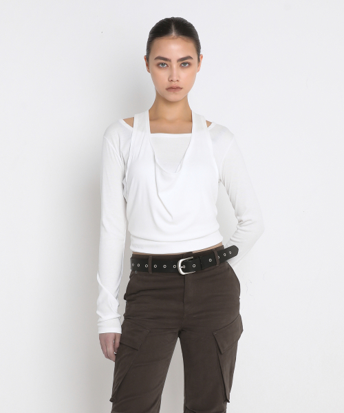 DRAPED HALTER LAYERED LONG SLEEVE T-SHIRT_IVORY