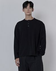 포인트 버튼 헨리넥 니트 _ 블랙