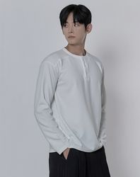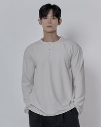 포인트 버튼 헨리넥 니트 _ 크림