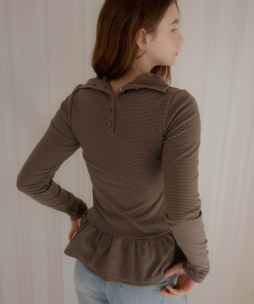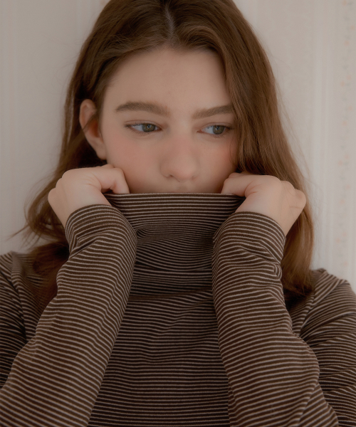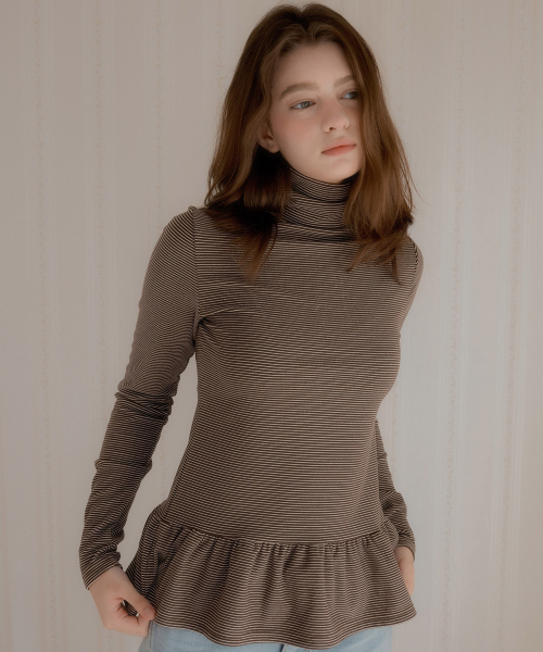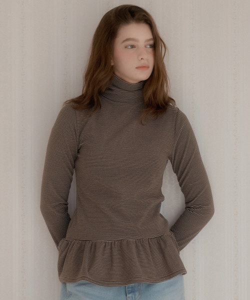 스트라이프 투웨이 프릴 터틀넥 ( 브라운 )