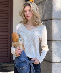 브이넥 레이스 랩 티셔츠 ( 크림 )