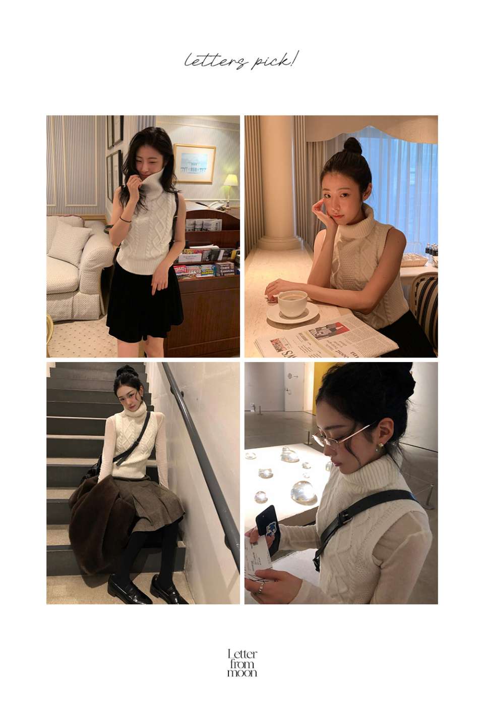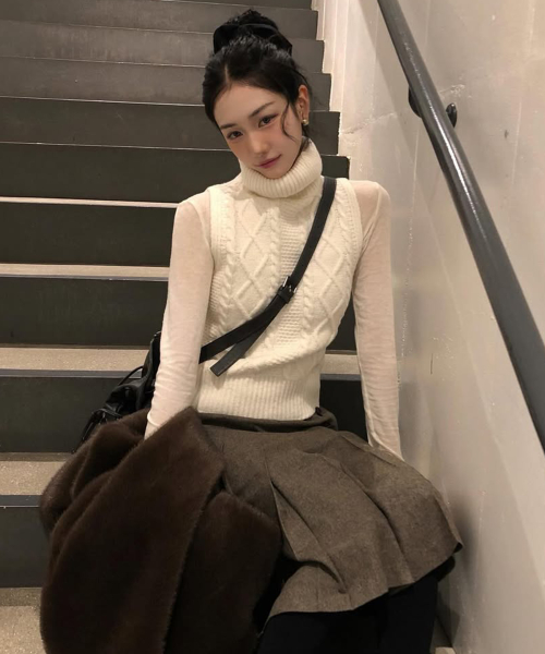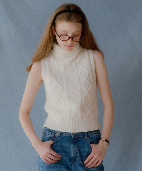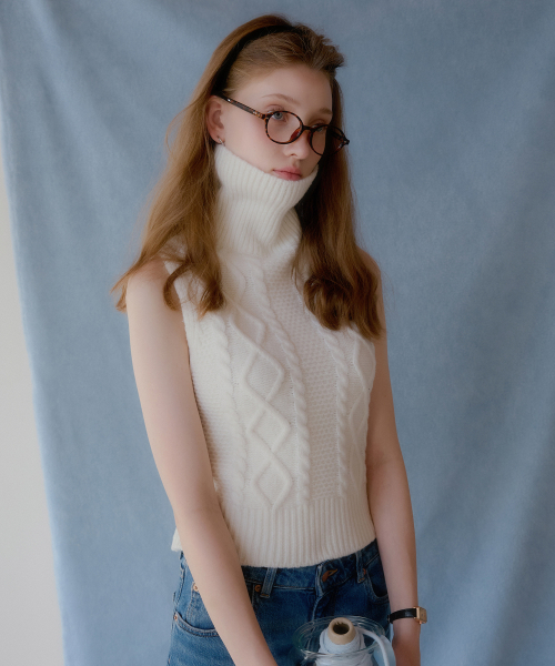 케이블 터틀넥 울 베스트 ( 아이보리 )